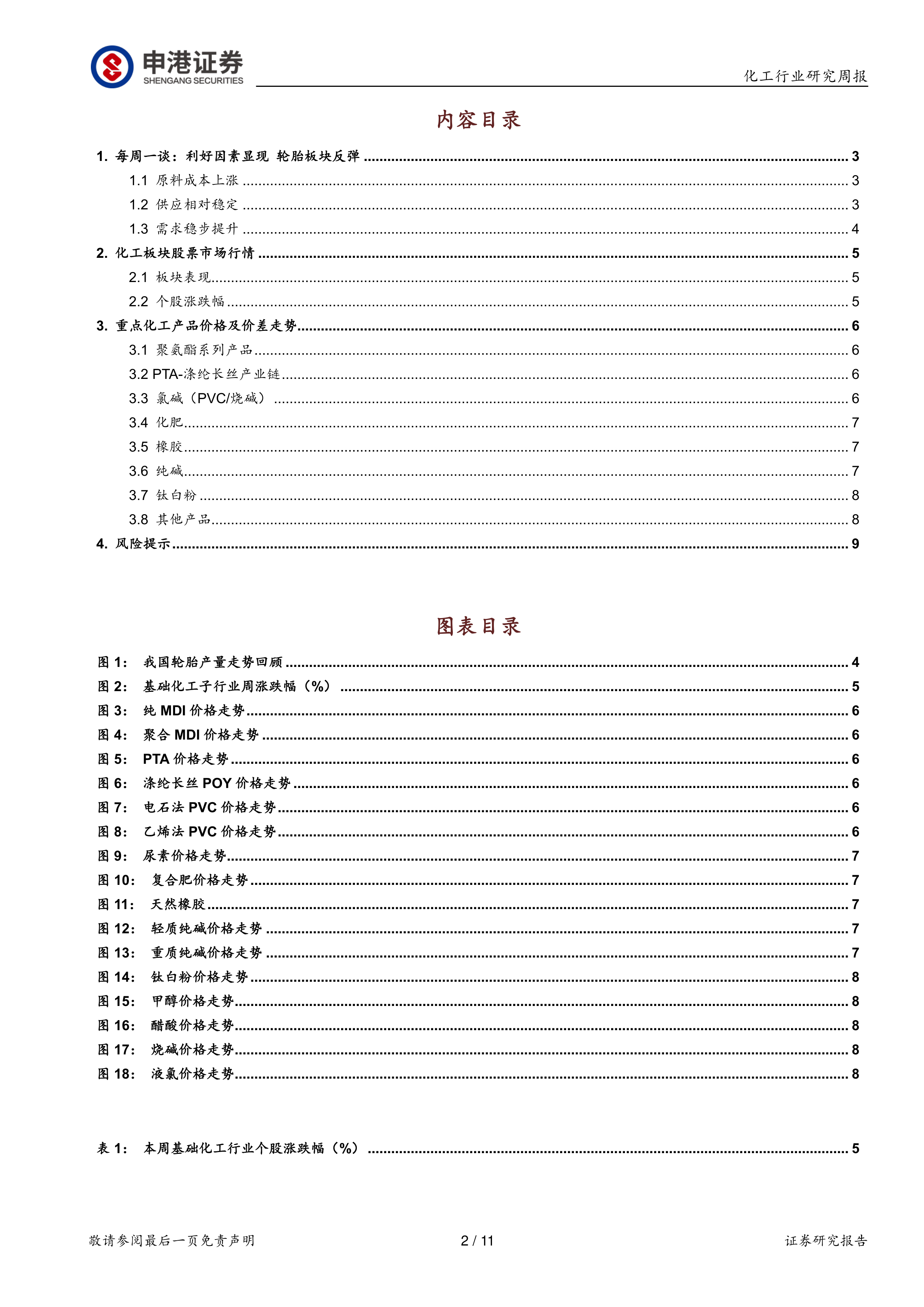 基础化工行业周报:利好因素显现 轮胎板块反弹
