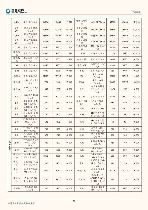 基础化工行业研究:农药价格疲软,MDI、维生素维稳运行