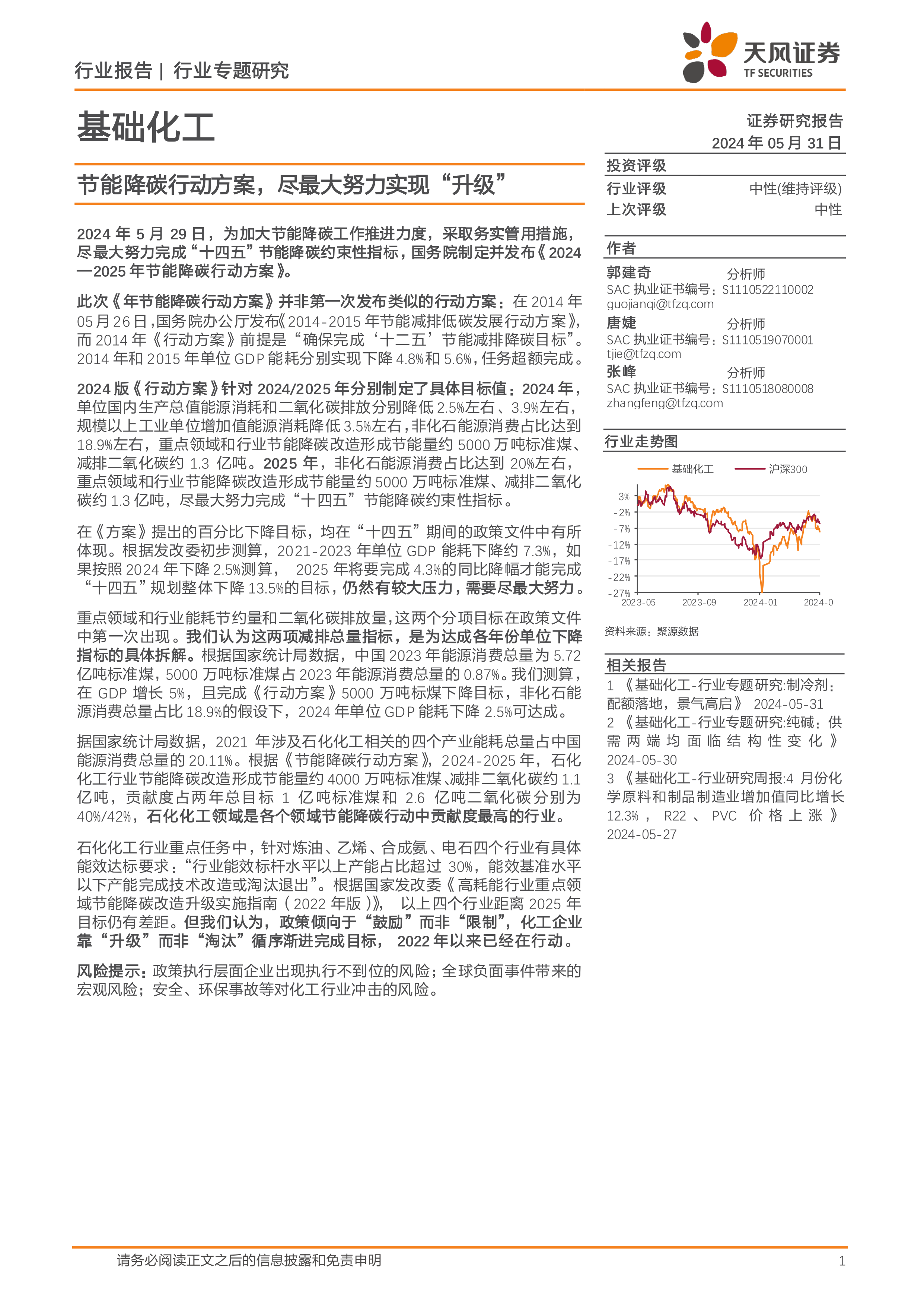 基础化工行业专题研究:节能降碳行动方案,尽最大努力实现“升级”