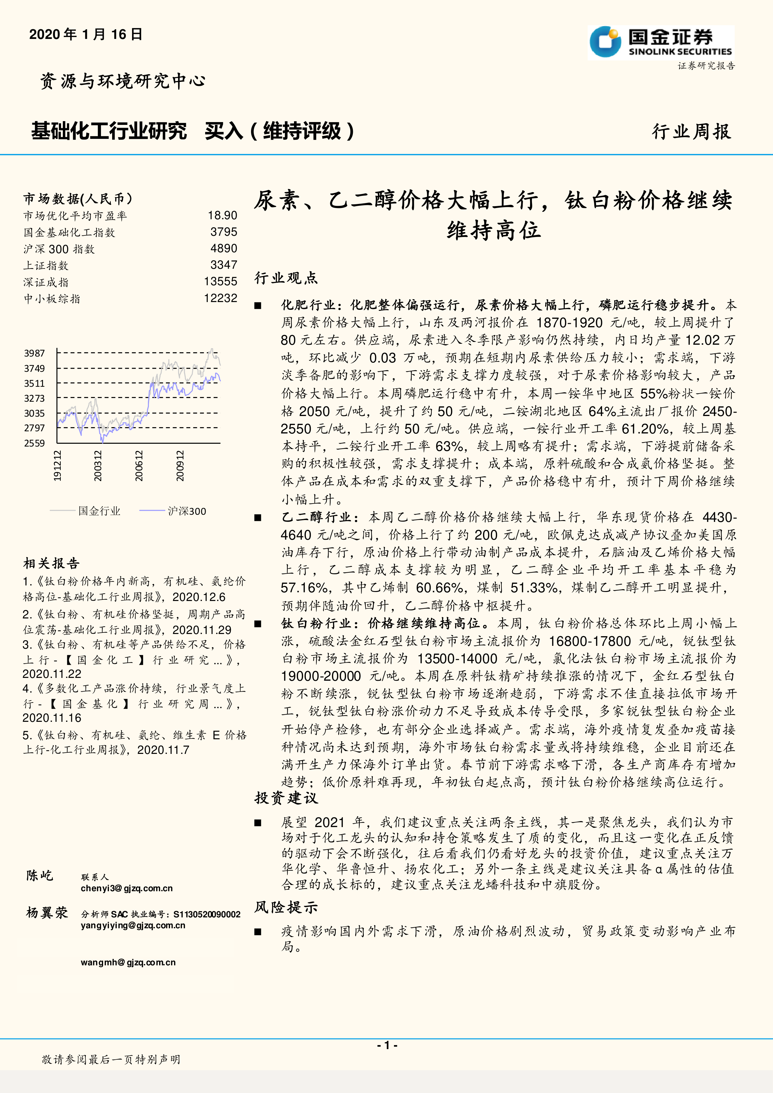 基础化工行业研究:尿素、乙二醇价格大幅上行,钛白粉价格继续维持高位
