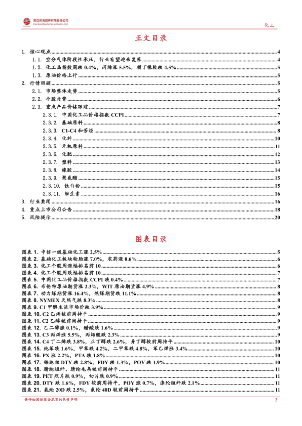 报告详细跟踪了多种化工产品的价格波动,包括: