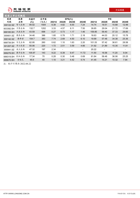 投资建议:我们看好疫苗行业的长期发展前景,新技术、新产品将推动整个疫苗行业的可持续发展。我国疫苗行业正处于快速发展期,行业增速显著高于全球平均水平,高端化国产化国际化将造就一批具有国际竞争力的优质疫苗龙头型企业。我们建议重点关注疫苗上市公司智飞生物、沃森生物、康泰生物、万泰生物、康希诺等。