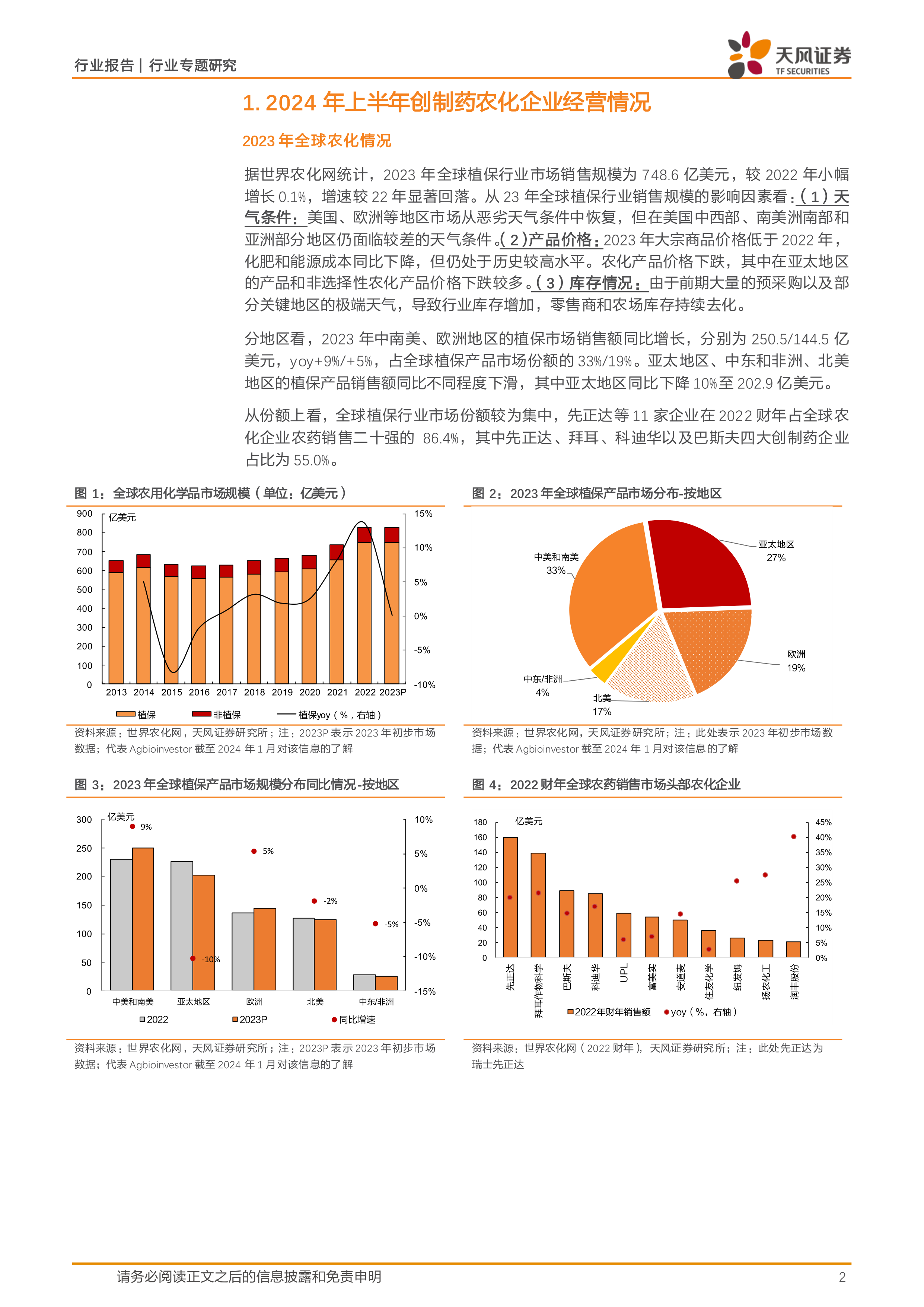 本报告详细分析了2024年上半年全球四大创制农化企业的经营情况,并对未来市场走势进行了展望。