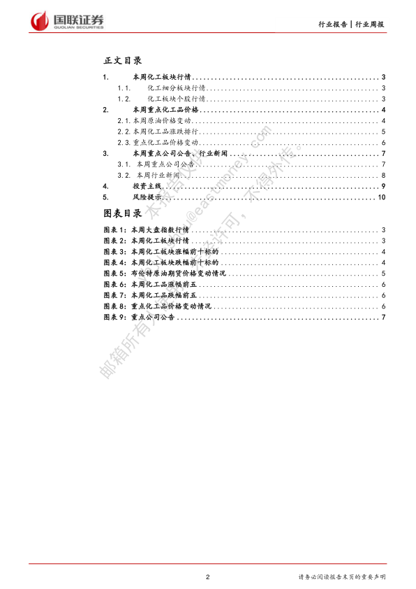 本报告最后列出了化工行业面临的主要风险,包括经济紧缩风险、原油价格大幅波动风险、国际贸易摩擦风险、疫情反复风险以及通货膨胀风险,提醒投资者注意投资风险。