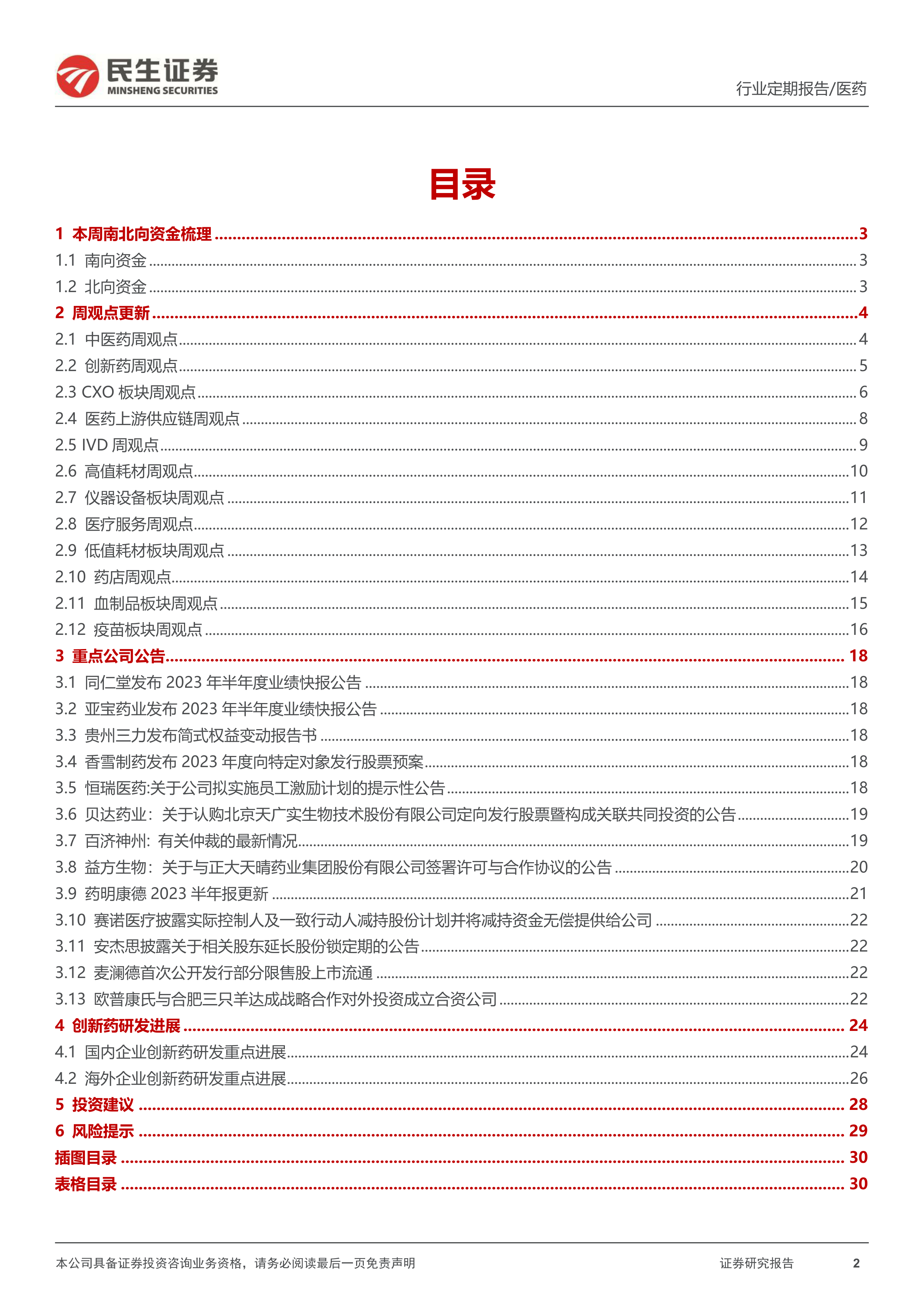 风险提示: 集采压力大于预期风险;产品研发进度不及预期风险;竞争加剧风险;政策监管环境变化风险;药物研发服务市场需求下降的风险