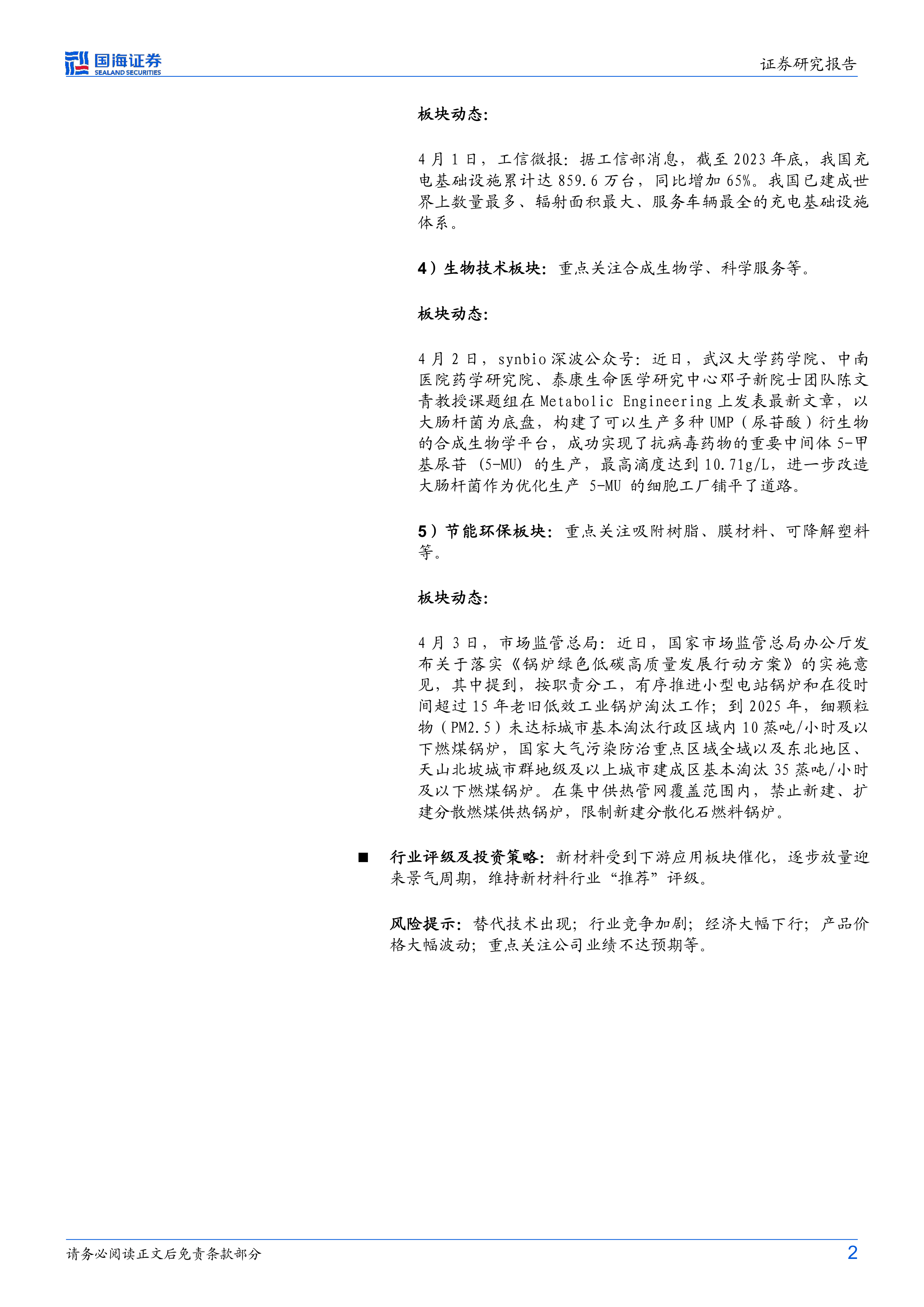 本报告基于对新材料行业五个主要板块的深入分析,结合市场数据和公司公告,得出新材料行业正处于景气周期,并对部分重点公司给予“买入”评级。 然而,投资者仍需关注报告中提到的风险因素,谨慎决策。 报告中大量的数据图表直观地展现了行业和公司表现,为投资者提供了有价值的参考信息。