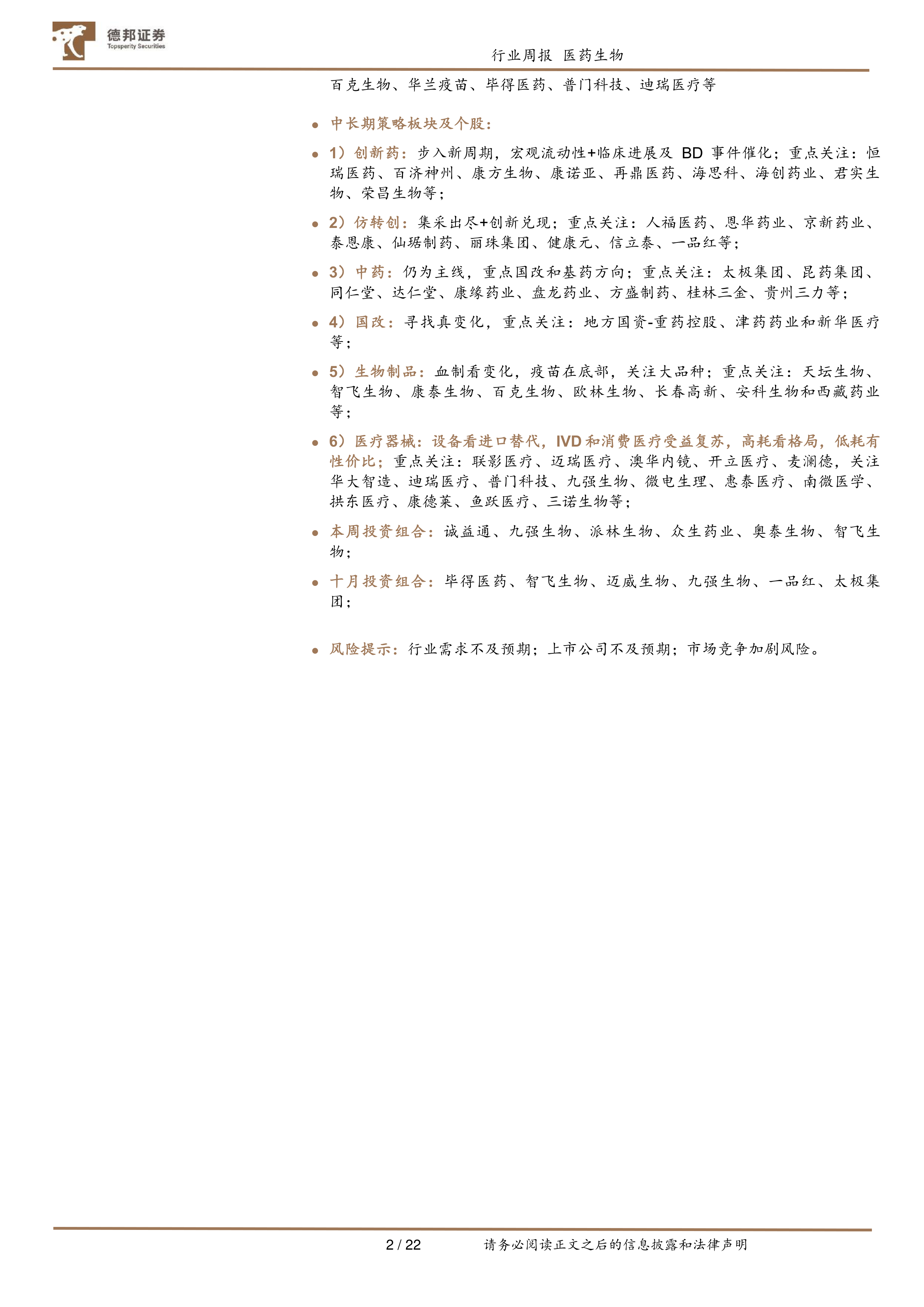 中长期来看,应重点关注创新药(新周期、宏观流动性)、仿制药转型创新(集采出尽、创新兑现)、中药(国改、基药)、国企改革、生物制品(血制品、疫苗)以及医疗器械(进口替代、消费医疗复苏)等板块。