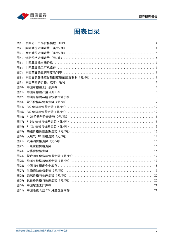 经历了1-2个季度的持续下跌后,7月份以来,草甘膦、TDI、甲醇、制冷剂、EVA、尿素等多种化工产品价格显著上涨,CCPI价格指数也从近一年低点开始反弹。同时,钾肥、尿素、TDI等产品的库存下降至近年来的低位,下游需求回暖,行业进入主动补库周期。