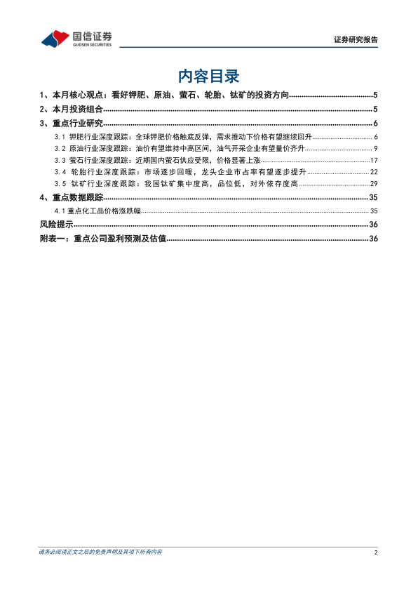本报告从钾肥、原油、萤石、轮胎、钛矿五个重点行业入手,结合市场数据和行业分析,对未来投资方向进行预测和推荐。