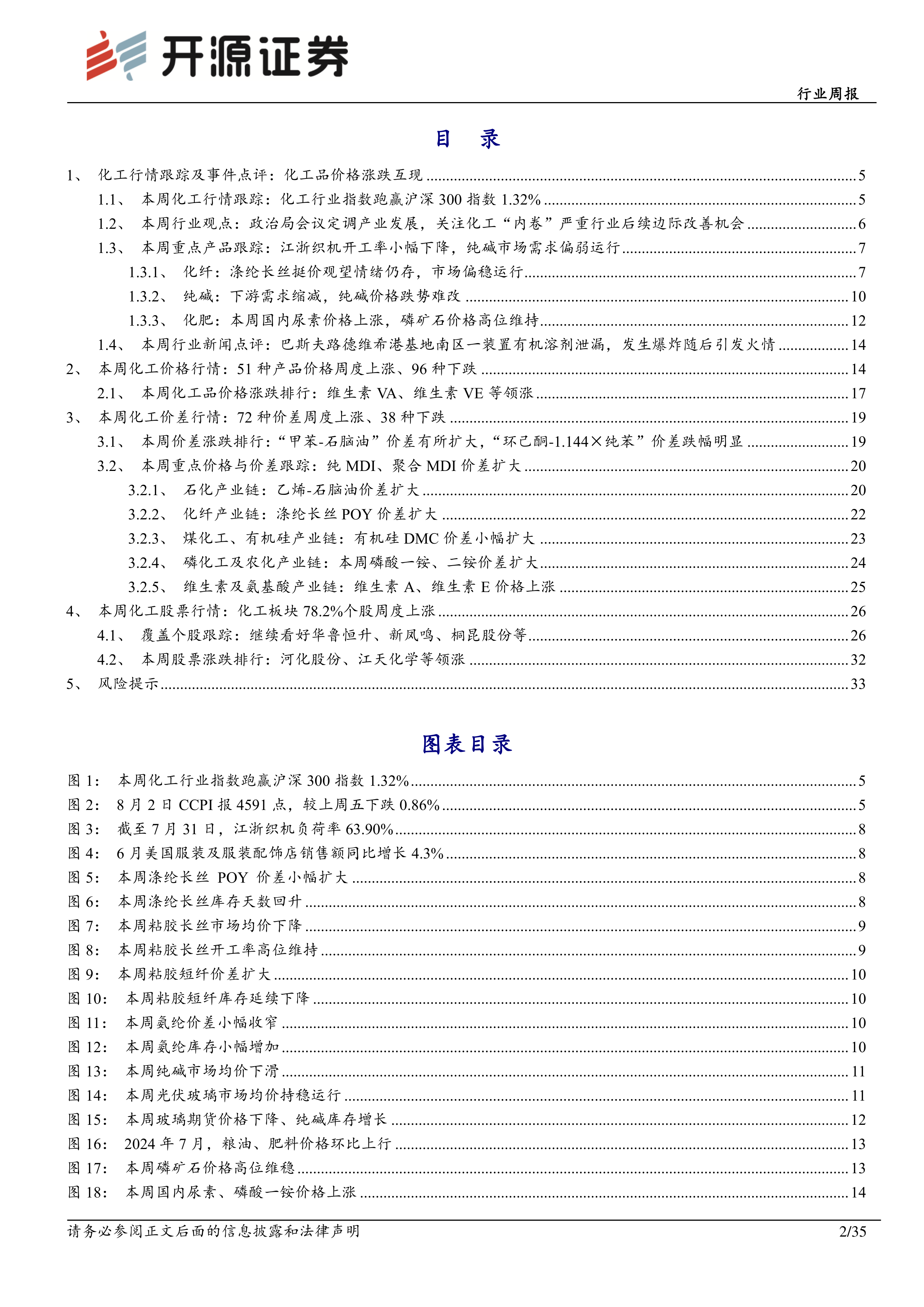 本报告以数据和图表的形式,详细分析了本周化工行业及相关上市公司的表现,并结合政治局会议精神,对行业未来发展趋势进行了展望。