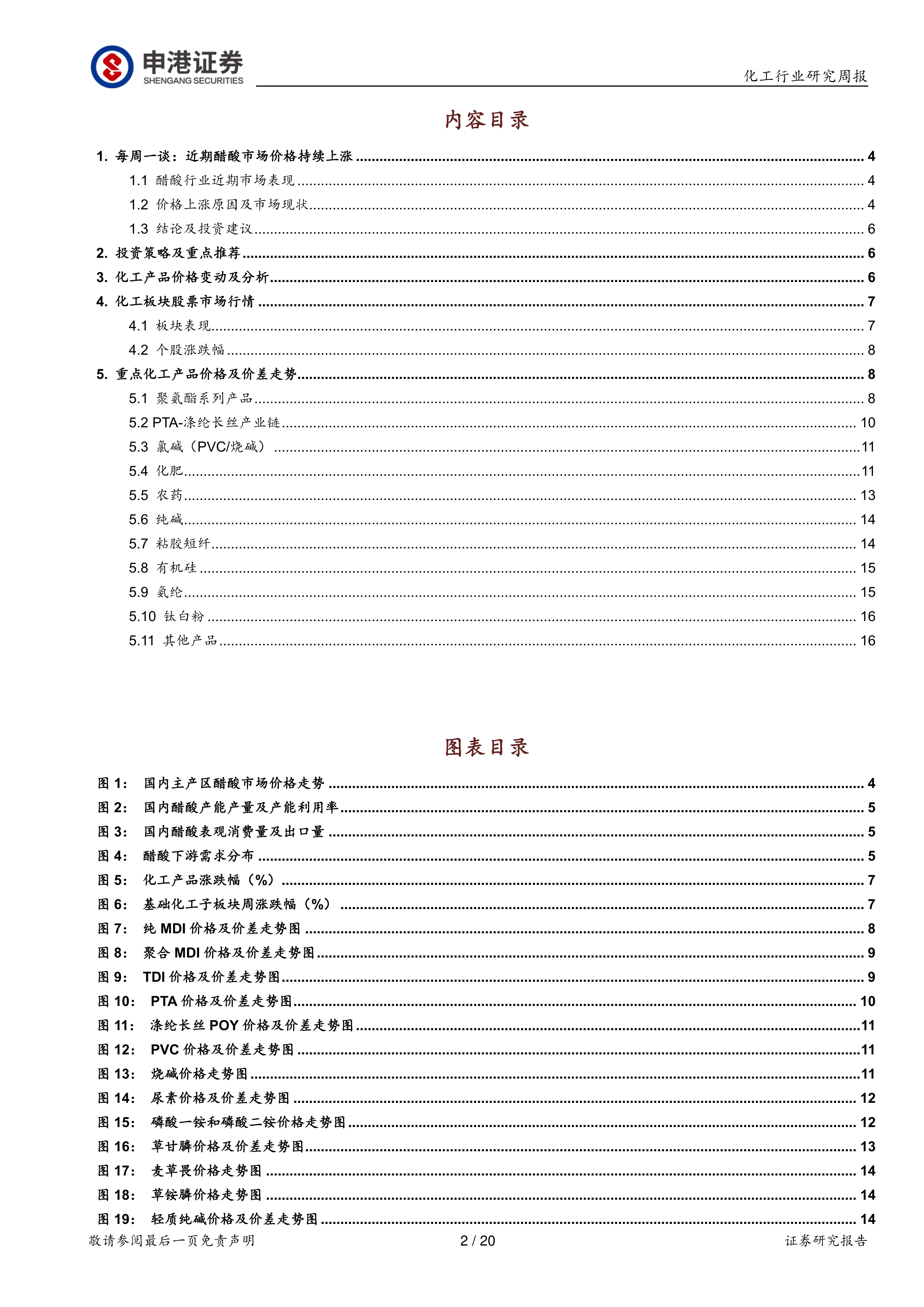 本报告对近期醋酸市场价格上涨进行了深入分析,指出供给端收缩是价格上涨的主要原因。报告同时分析了醋酸行业供需现状及未来展望,并对相关化工产品价格及股票市场行情进行了概述。中长期来看,醋酸行业新增产能有限,供需关系有望持续改善,但仍需关注下游需求和意外装置故障等风险。报告最后给出了投资建议,推荐关注行业龙头企业。
