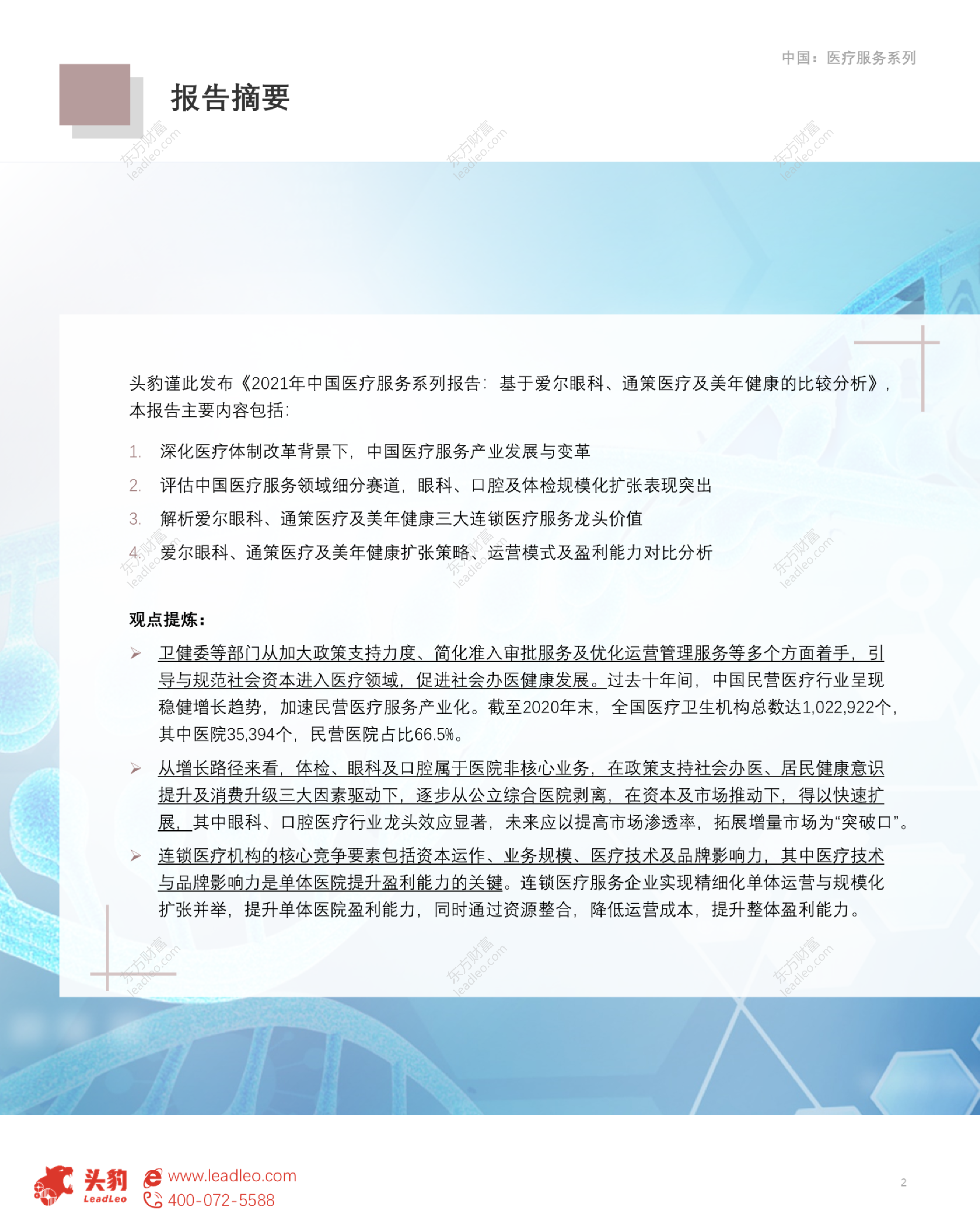 2021年中国医疗服务系列报告:基于爱尔眼科、通策医疗及美年健康的比较分析