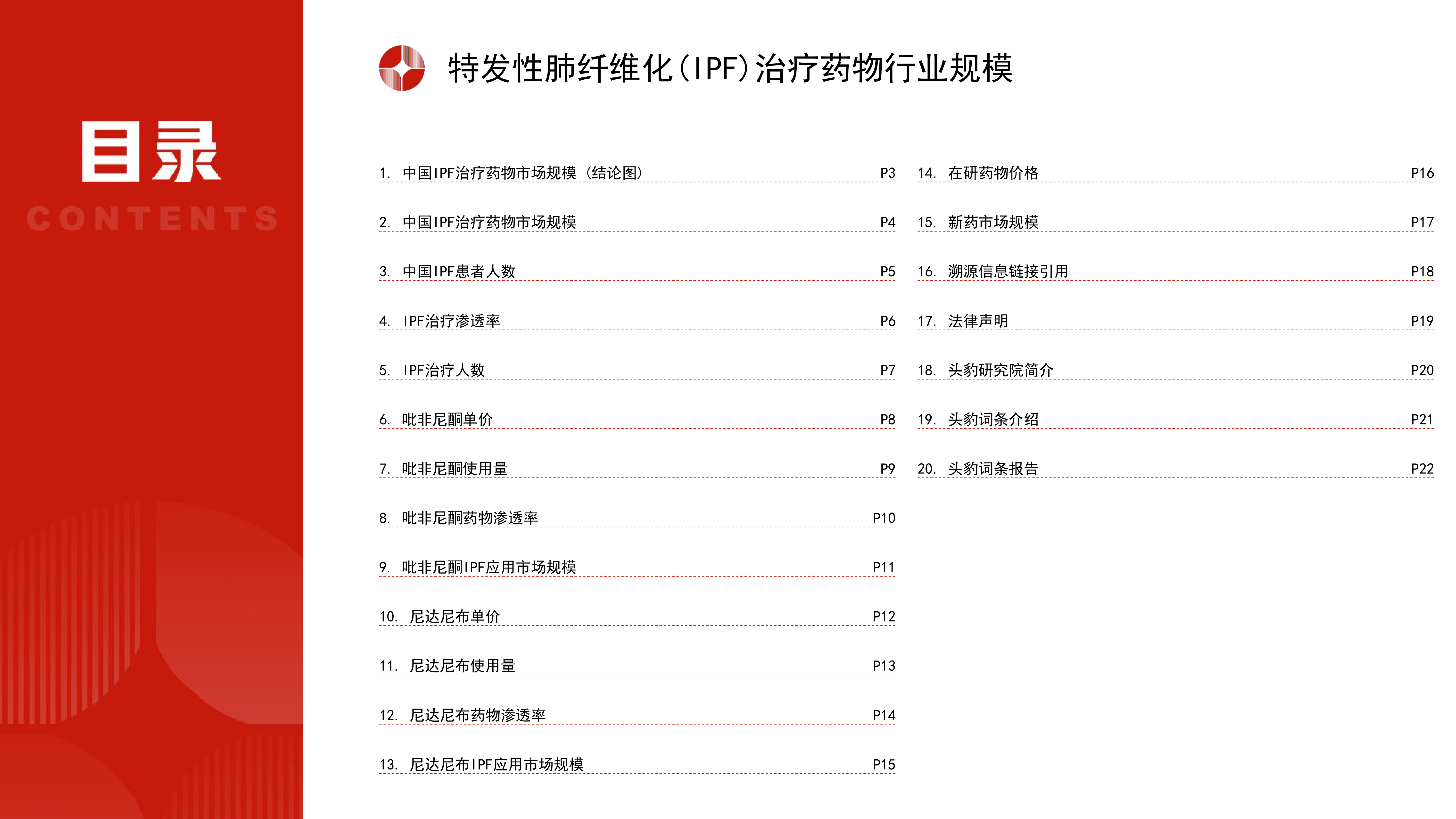 本报告基于头豹研究院发布的《特发性肺纤维化(IPF)治疗药物 中国 行业 规模 市场 测算逻辑模型》报告,运用统计数据和模型分析,对中国IPF治疗药物市场规模进行测算和预测。核心观点如下: