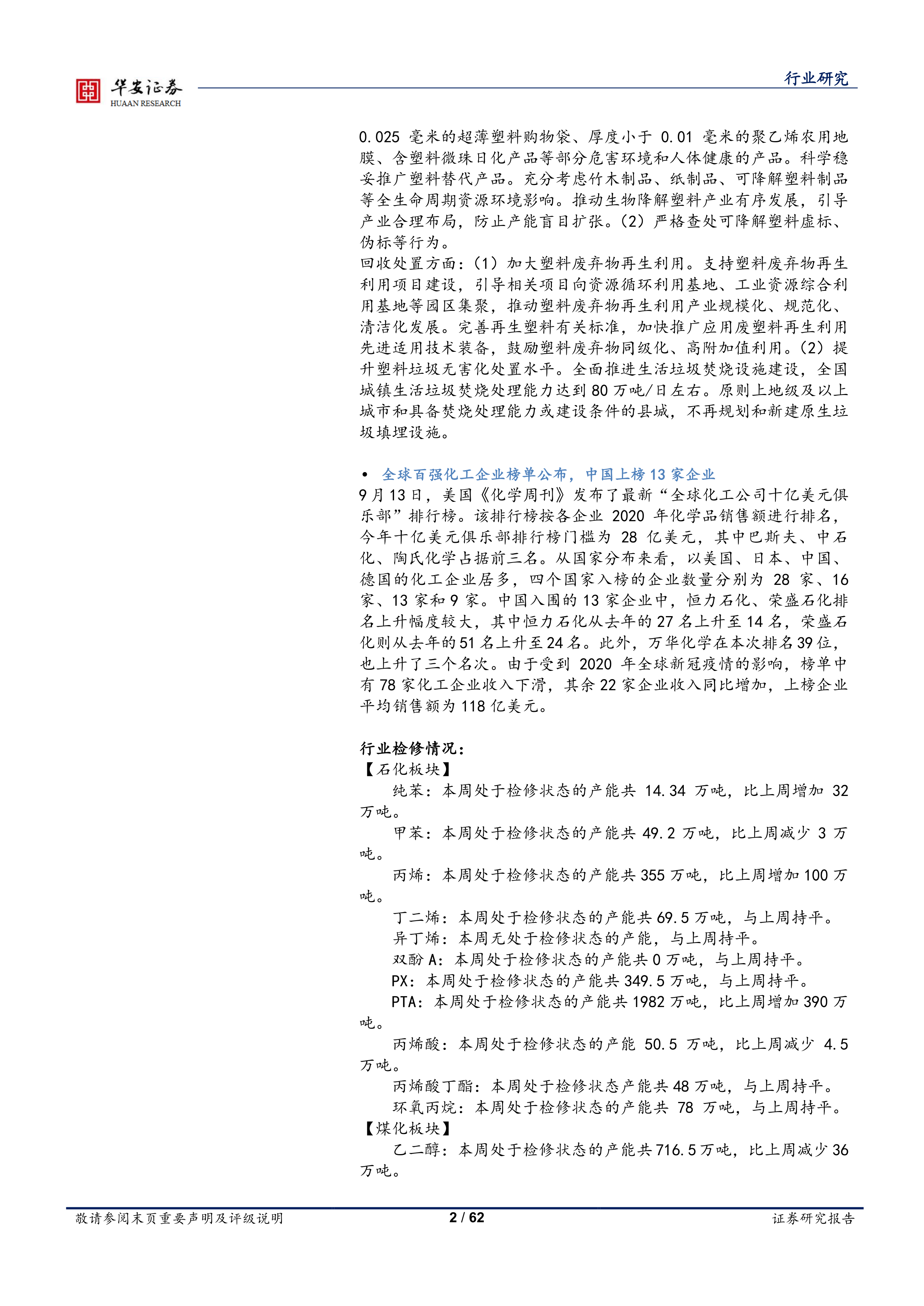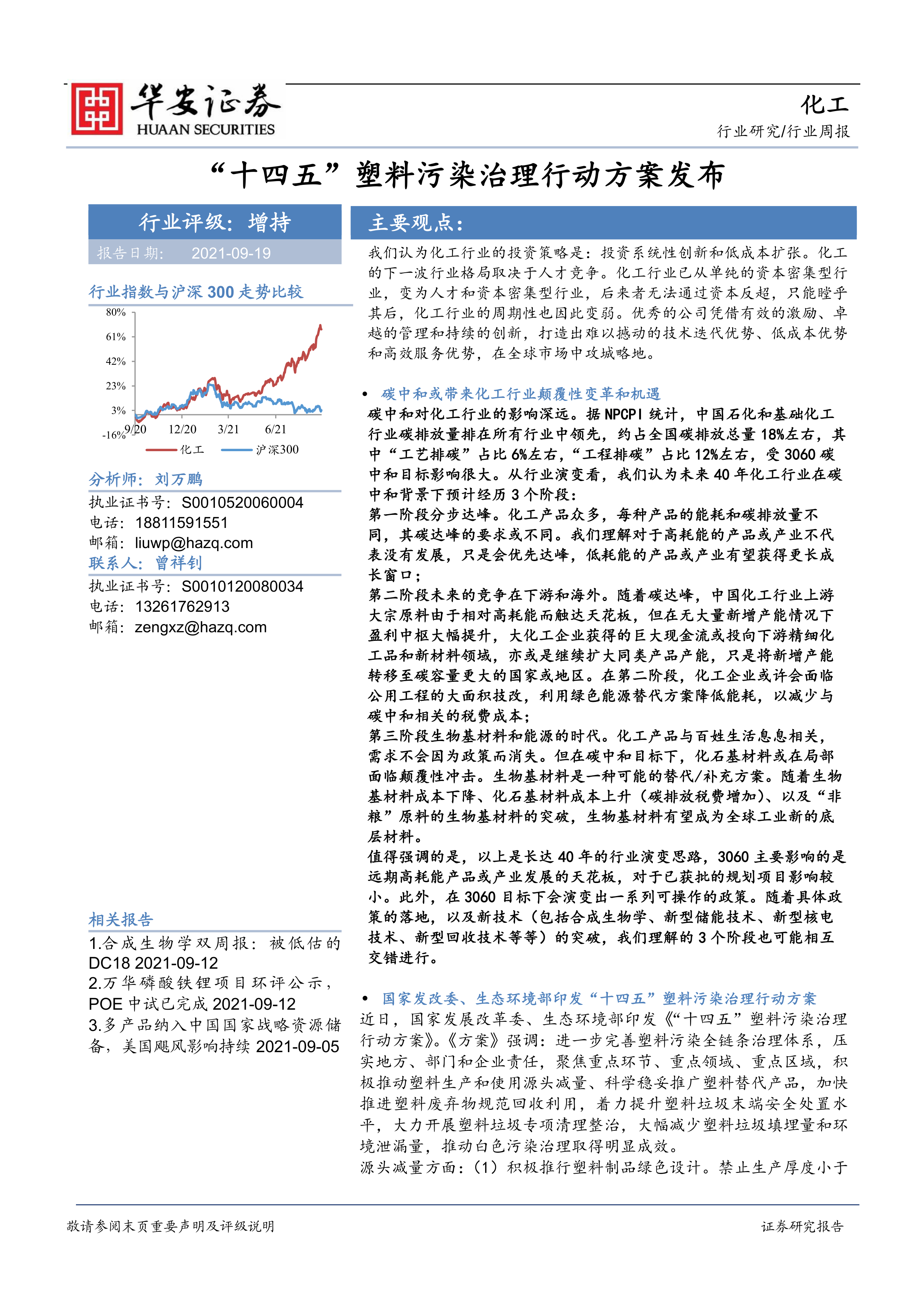 化工行业周报:“十四五”塑料污染治理行动方案发布