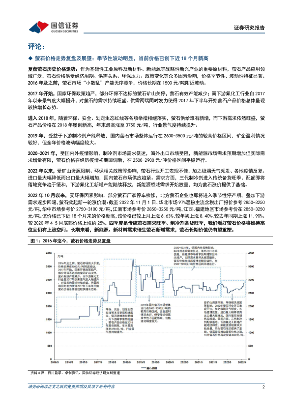 本报告从萤石价格走势、上涨因素及投资建议三个方面展开分析。