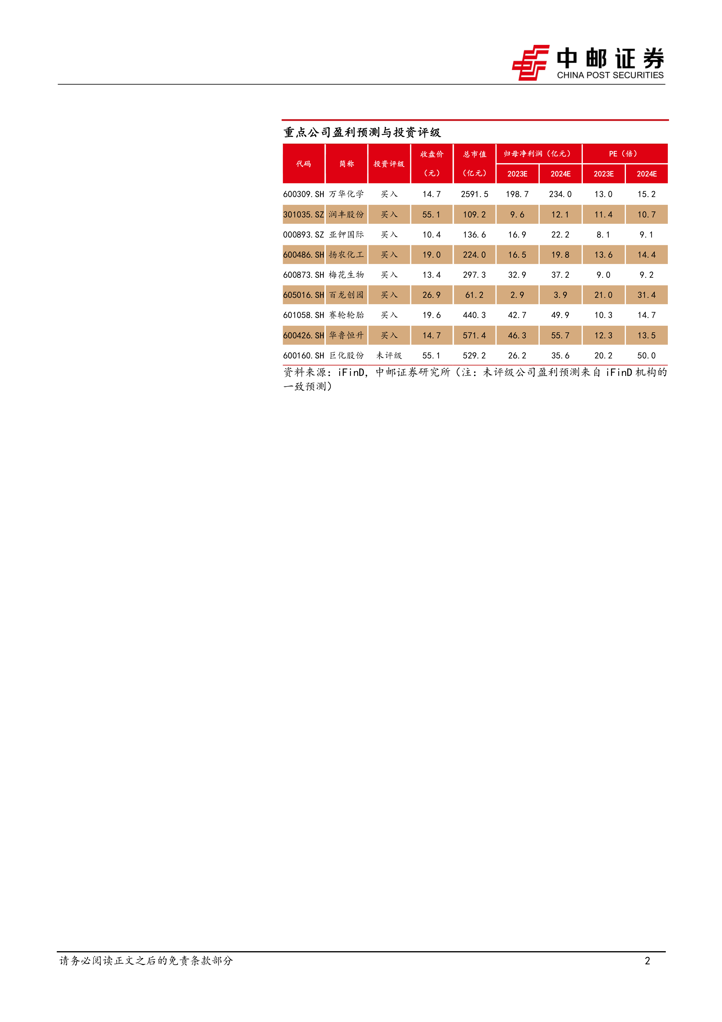 本报告基于对基础化工行业周报数据的分析,认为该行业已触底,并有望在2024年迎来向上拐点。 报告从供需关系、估值水平以及宏观经济环境等多个角度进行了深入分析,并提出了相应的投资建议,重点关注低估值龙头企业、中特估、AI材料链和出口链等投资方向。 然而,报告也提醒投资者注意潜在的风险因素,并强调投资需谨慎。 报告中提供的公司列表和数据分析,为投资者提供了有价值的参考信息,但投资者仍需进行独立判断,并结合自身风险承受能力做出投资决策。