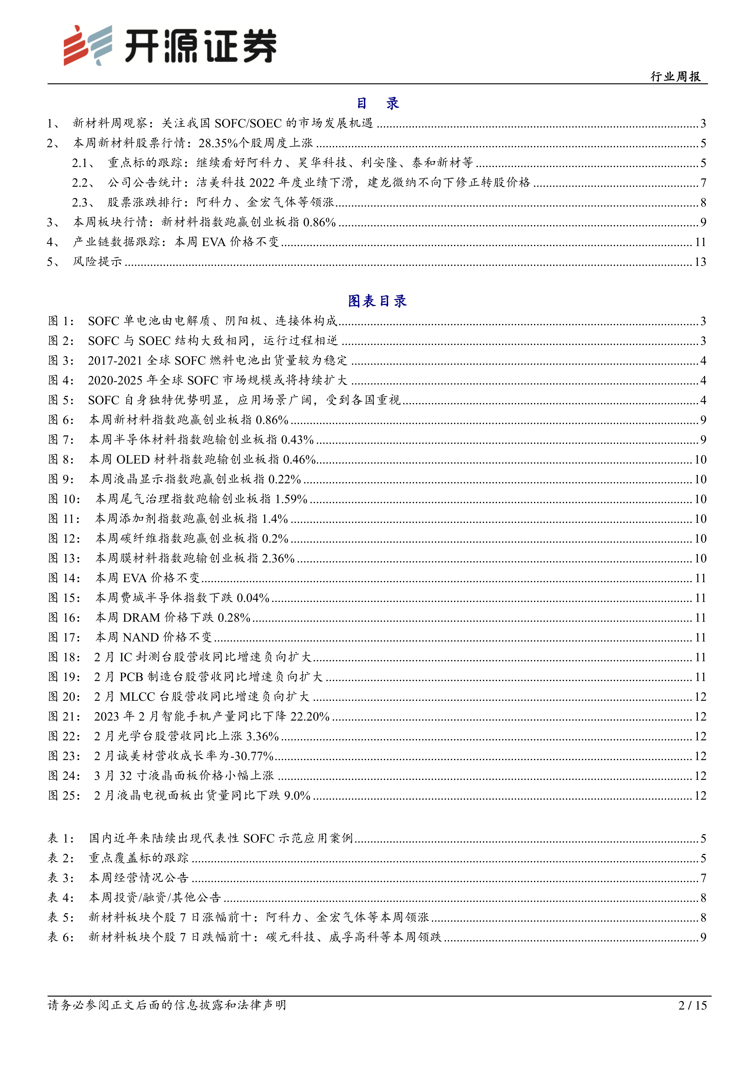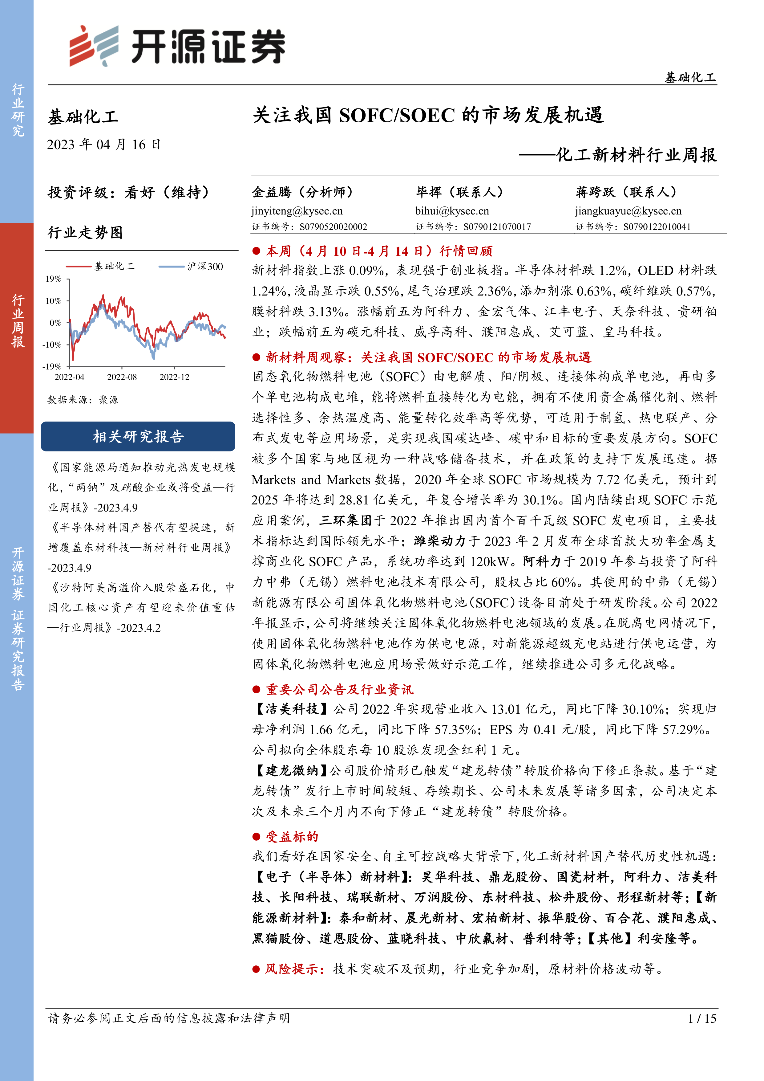 化工新材料行业周报:关注我国SOFC/SOEC的市场发展机遇