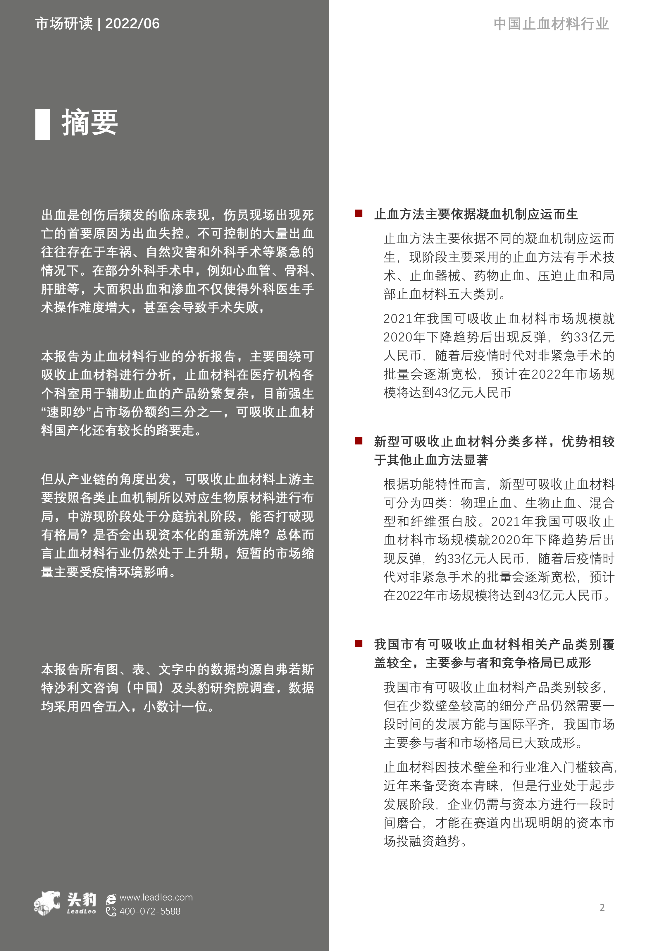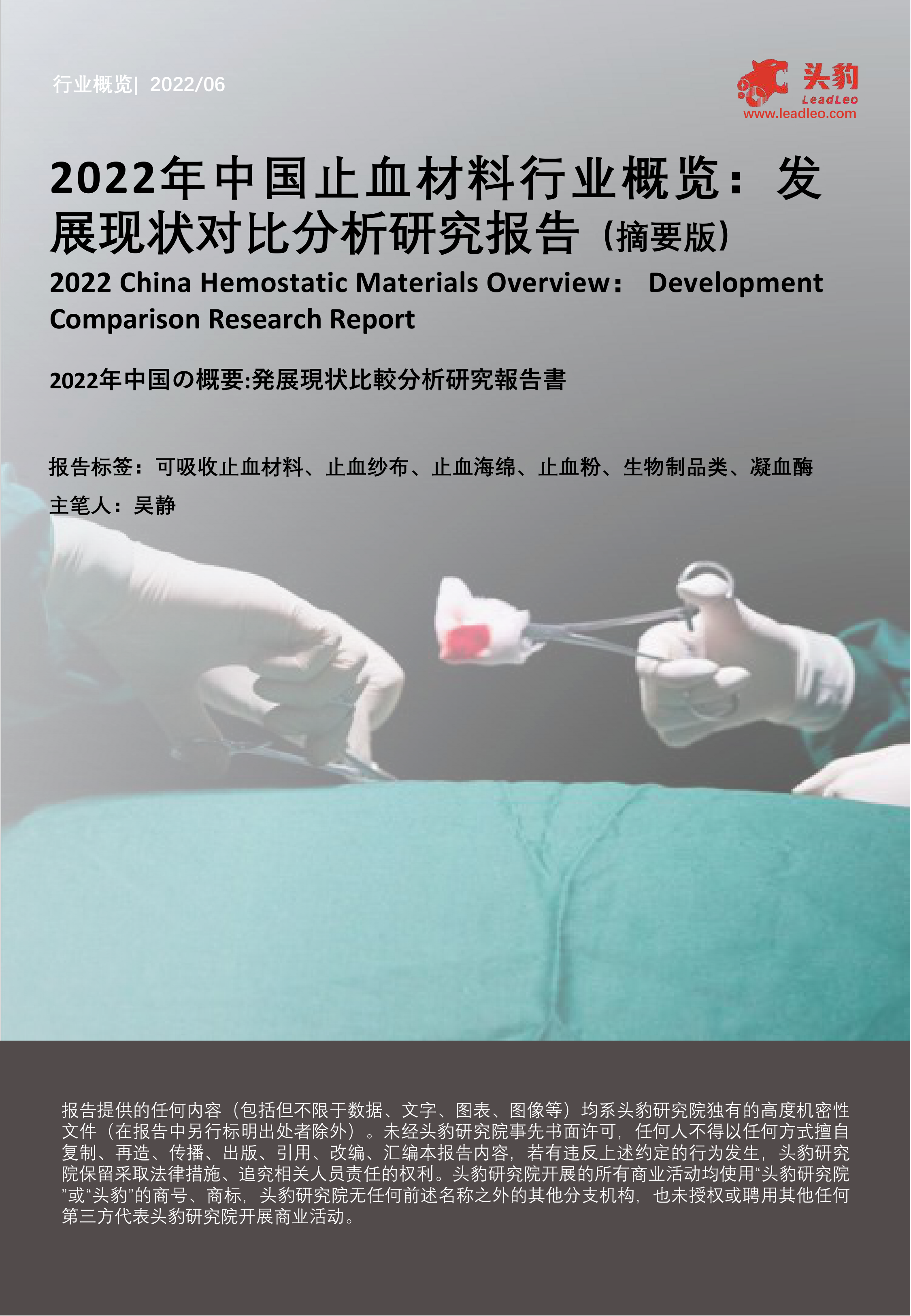 2022年中国止血材料行业概览:发展现状对比分析研究报告(摘要版)