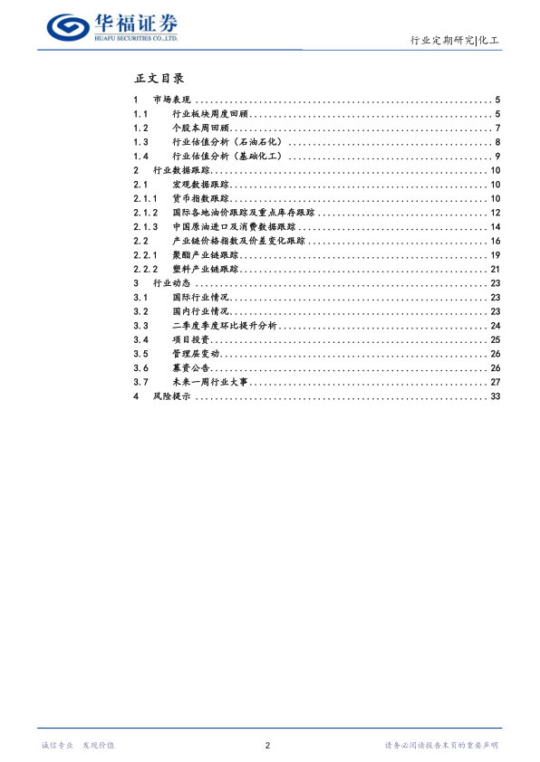 本报告基于详实的市场数据和行业信息,对化工行业,特别是石油石化和基础化工板块的近期表现和未来走势进行了深入分析。报告指出,油价走势对化工行业影响显著,炼化盈利能力有望提升,醋酸景气度快速上升。同时,报告也指出了行业面临的风险,例如产品价格波动、安全环保风险以及项目进度不及预期风险。 投资者应根据自身风险承受能力和投资目标,谨慎决策。 报告最后提供了具体的投资建议,建议关注能源安全、中下游盈利扩张以及新材料等领域,并列举了部分具有投资价值的公司。 需要注意的是,本报告仅供参考,不构成投资建议。