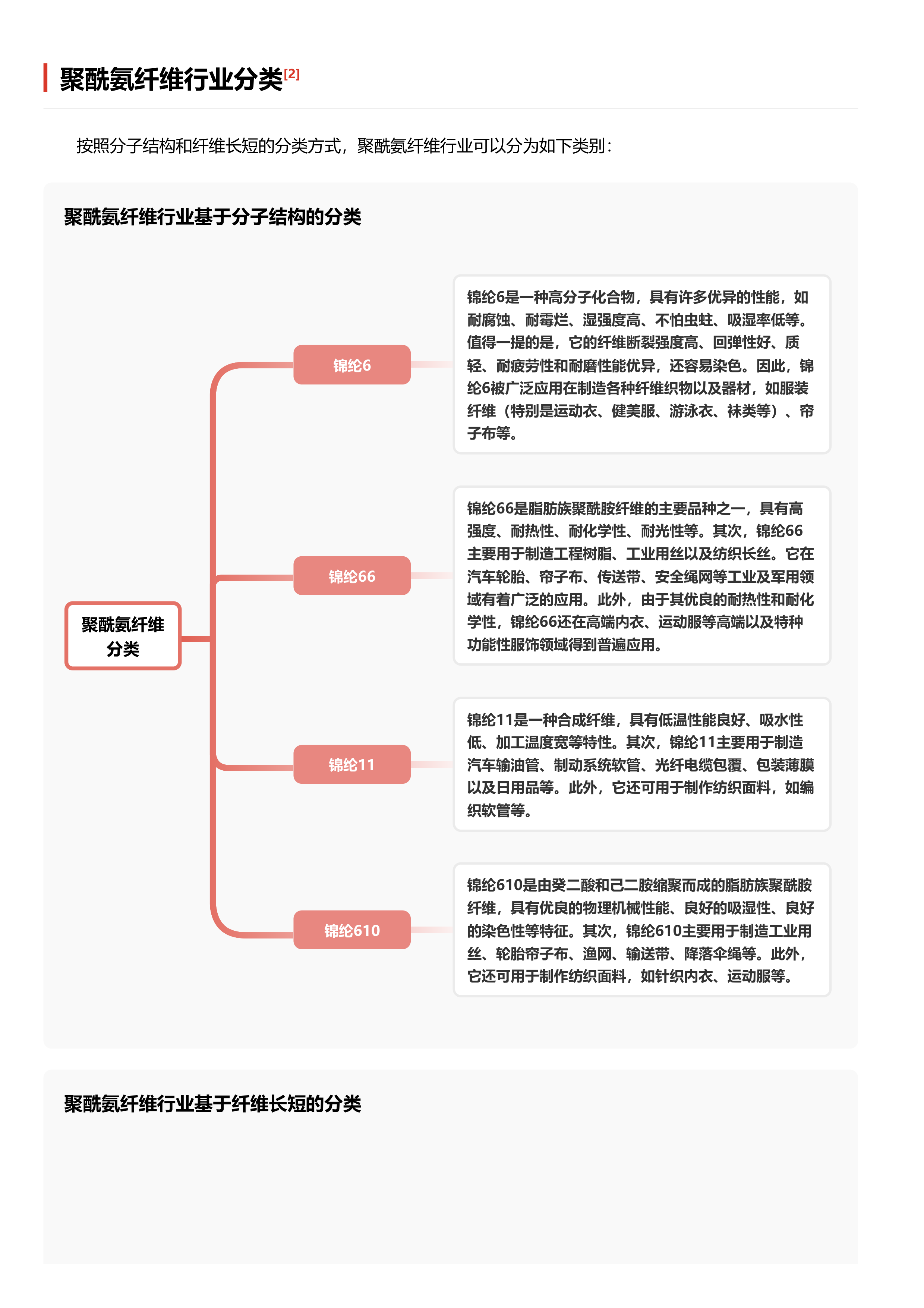 本报告首先对聚酰氨纤维(锦纶/尼龙)进行定义和分类,从分子结构(锦纶6、锦纶66、锦纶11、锦纶610等)和纤维长短(长丝、短纤)两个维度进行细分,并阐述了其优异的性能和广泛的应用领域(纺织、航空航天、军事、汽车、建筑、电子、医疗等)。