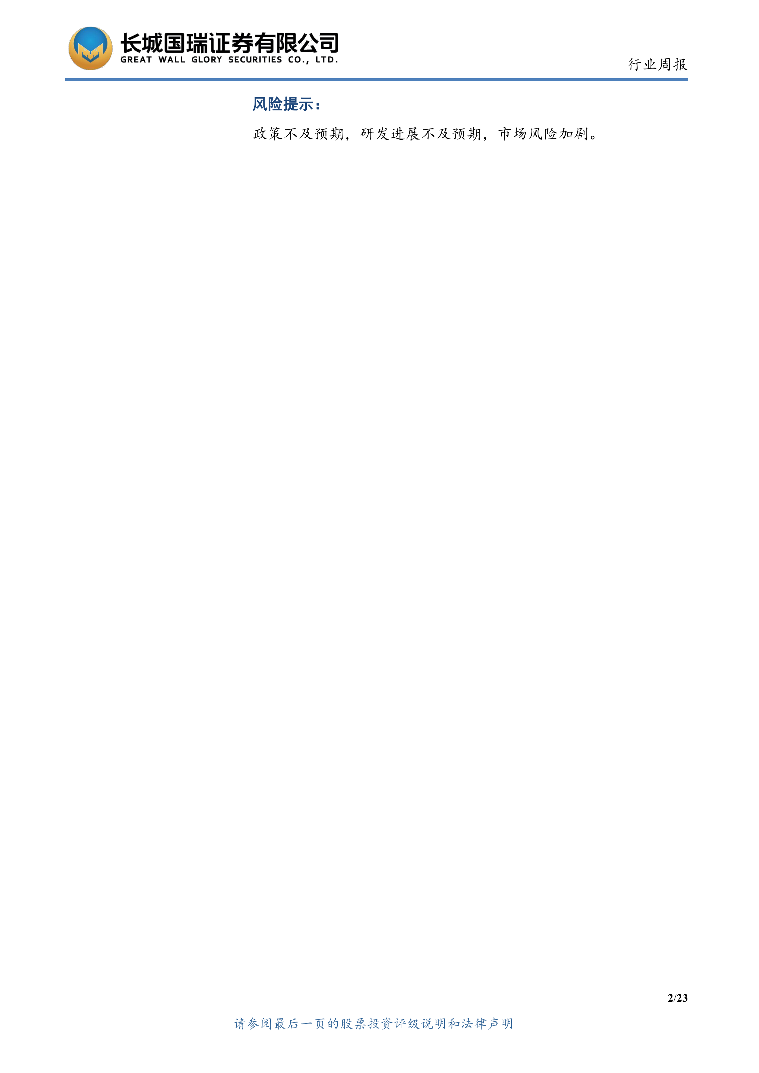 政策不及预期,研发进展不及预期,市场风险加剧。
