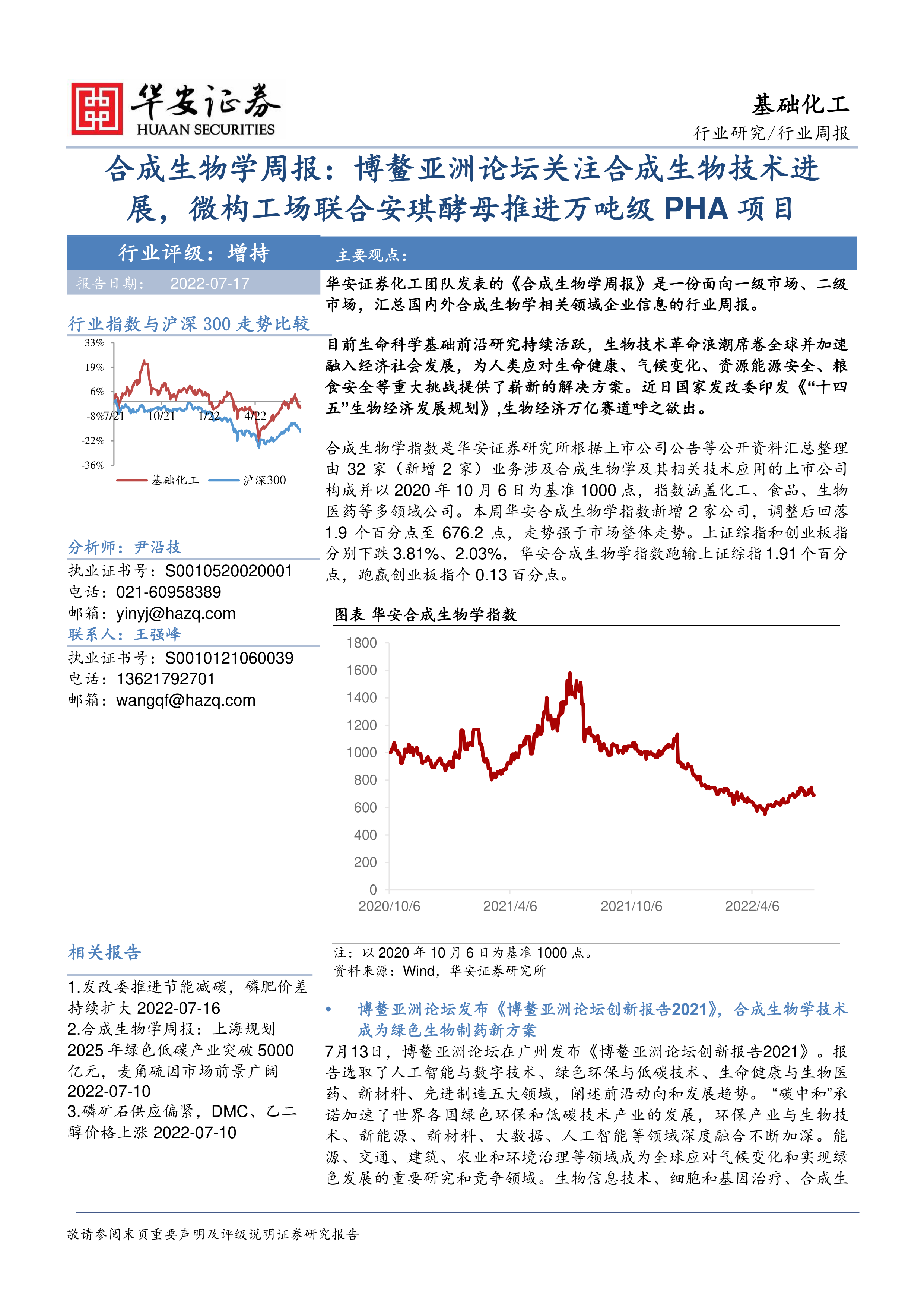 基础化工行业合成生物学周报:博鳌亚洲论坛关注合成生物技术进展,微构工场联合安琪酵母推进万吨级PHA项目