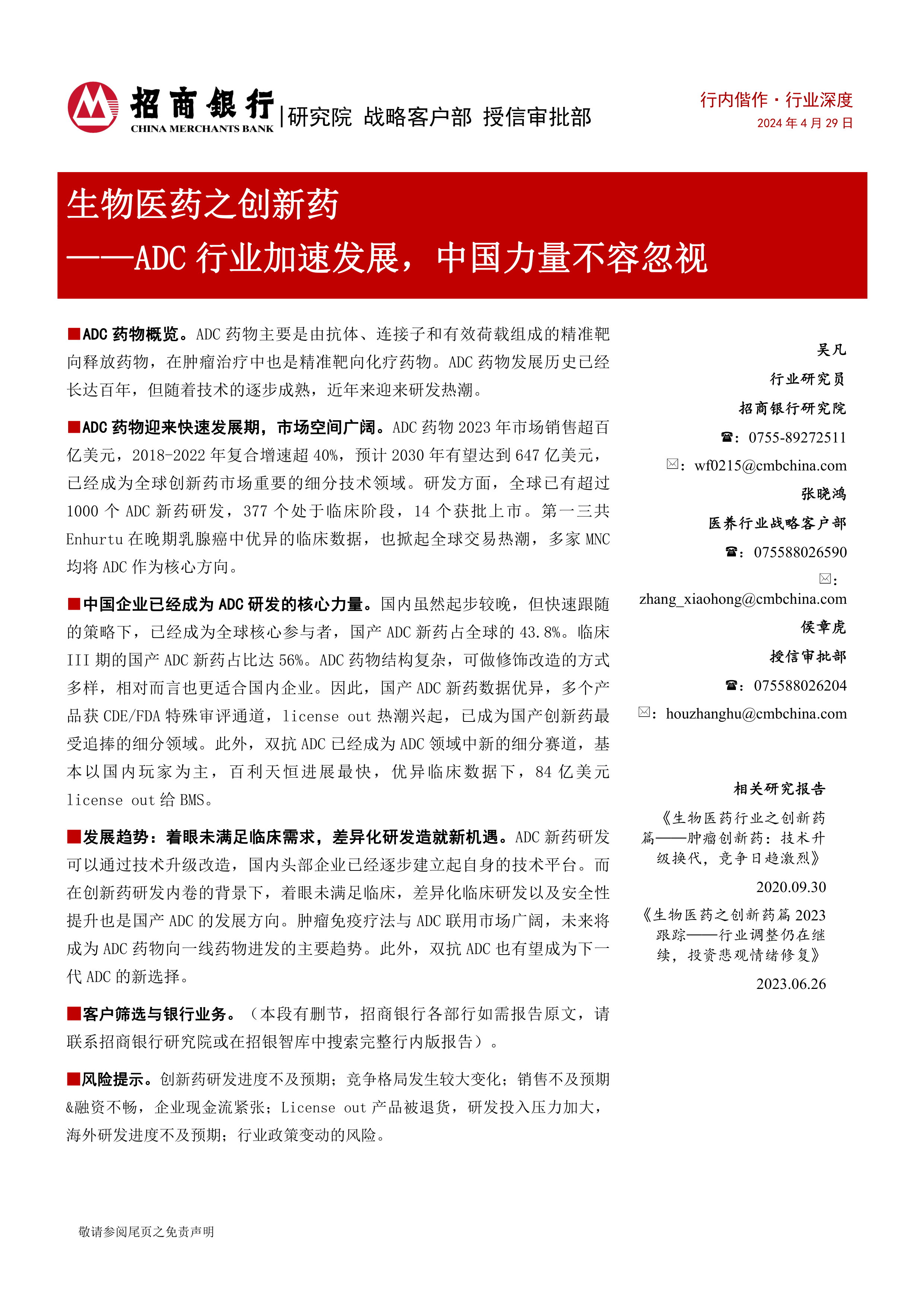 生物医药之创新药:ADC行业加速发展,中国力量不容忽视