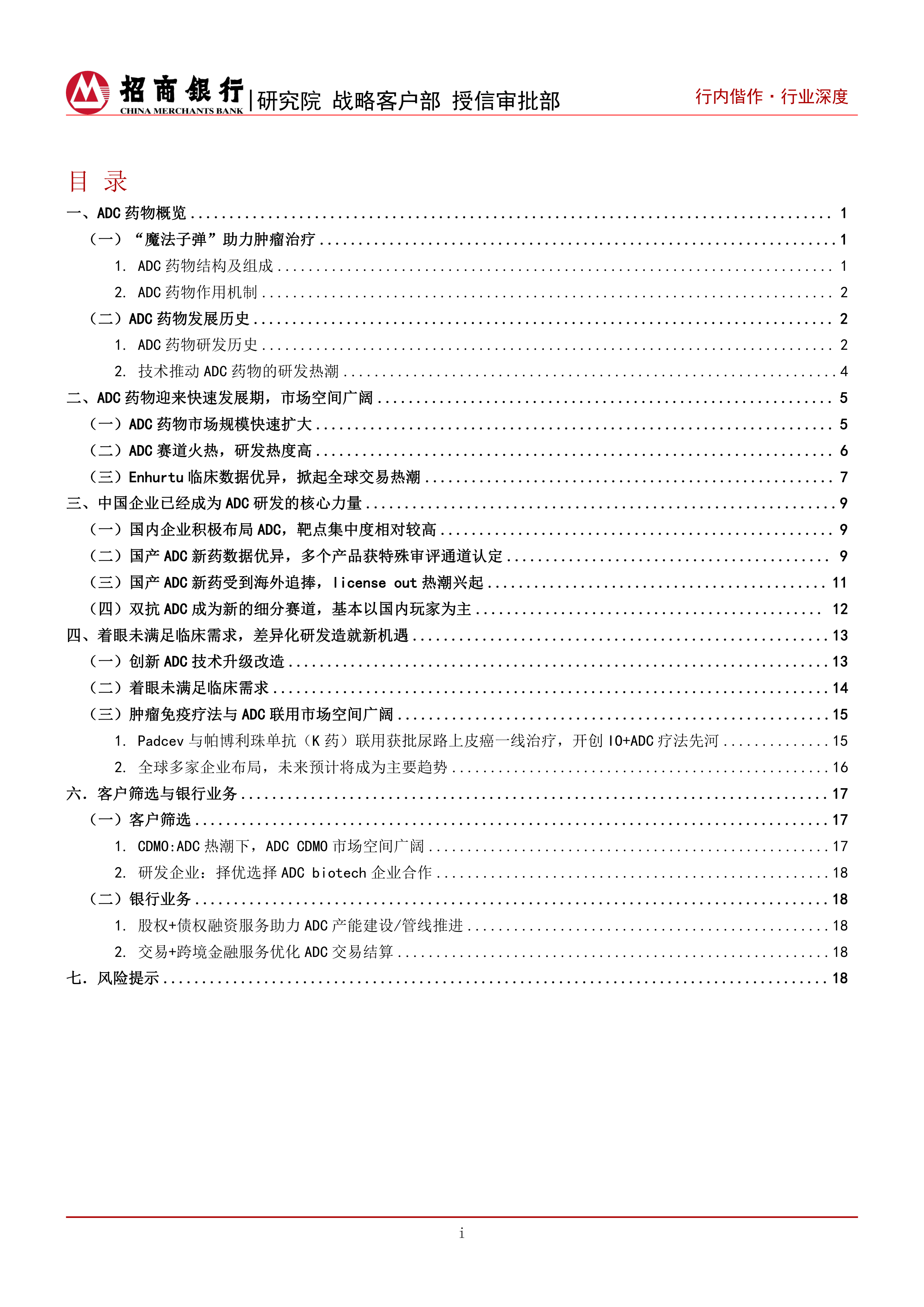 本节简要介绍了招商银行在ADC领域客户筛选和银行业务方面的策略,包括对CDMO企业和ADC研发企业的筛选标准,以及为ADC企业提供的股权+债权融资服务和交易+跨境金融服务。 (由于此部分内容有删节,具体细节未在输入文本中体现。)