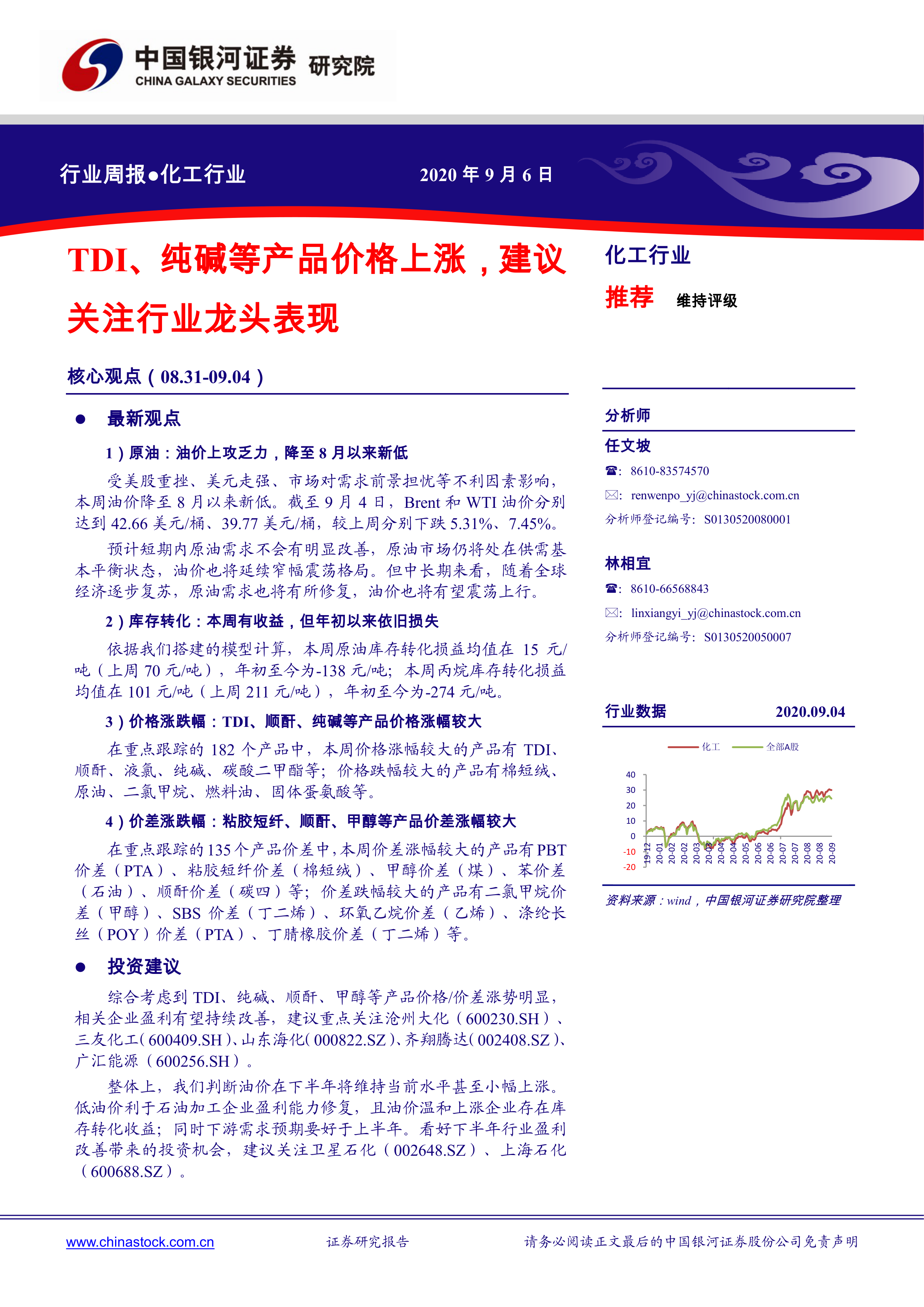 化工行业周报:TDI、纯碱等产品价格上涨,建议关注行业龙头表现