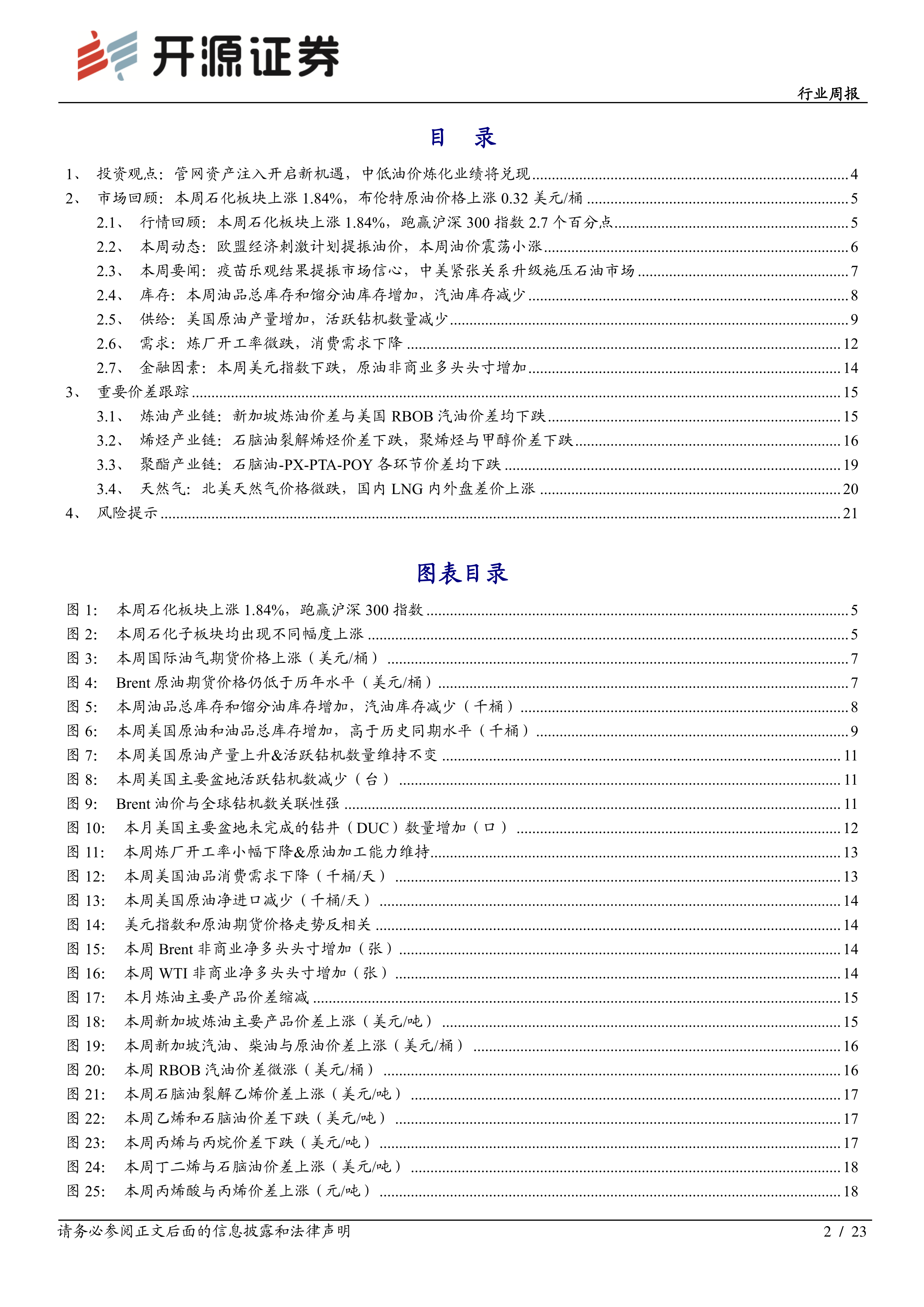 石油化工行业周报:管网资产注入开启新机遇, 中低油价炼化业绩将兑现