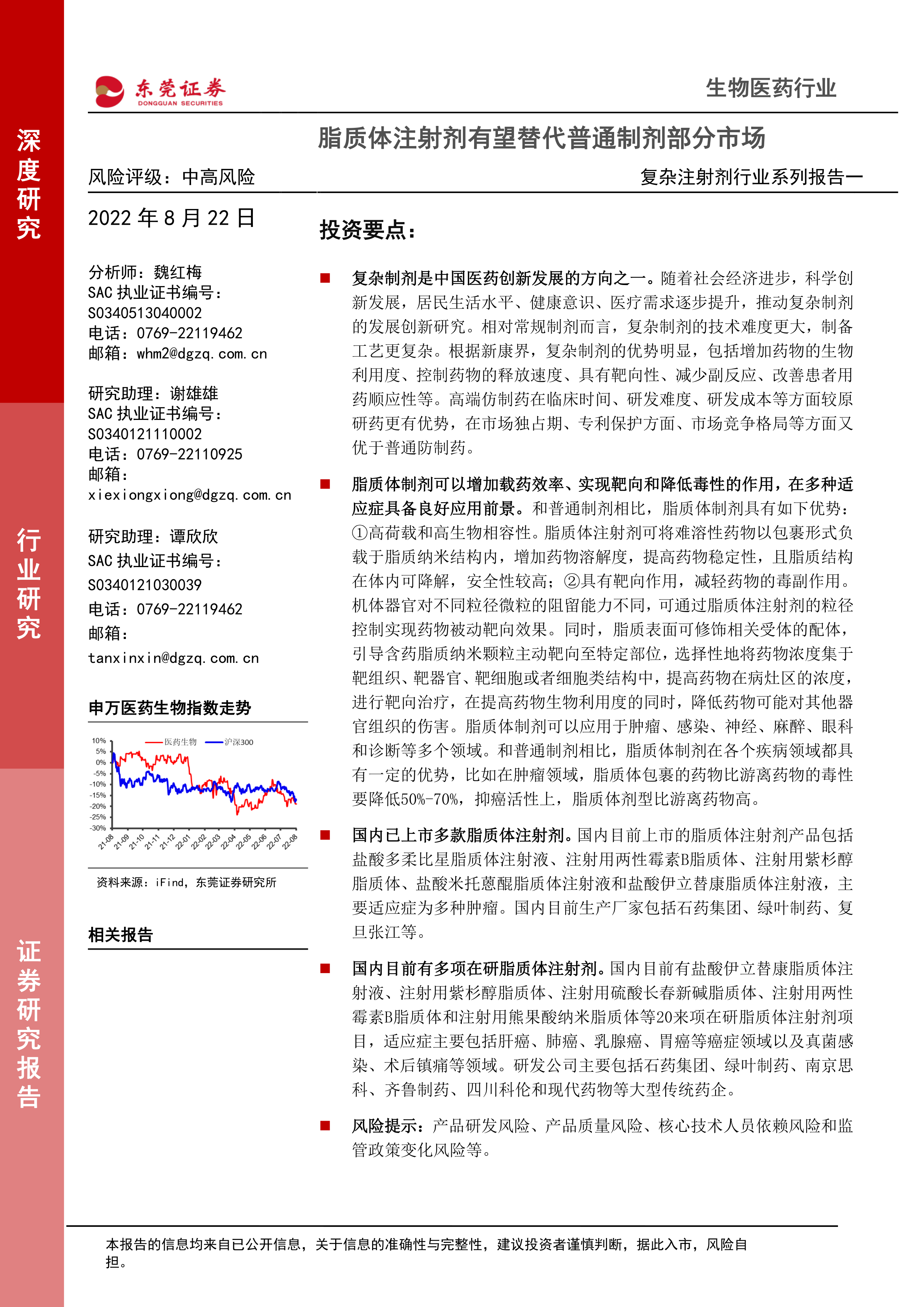 本报告对复杂注射剂行业及脂质体注射剂市场进行了深入分析,内容涵盖以下几个方面: