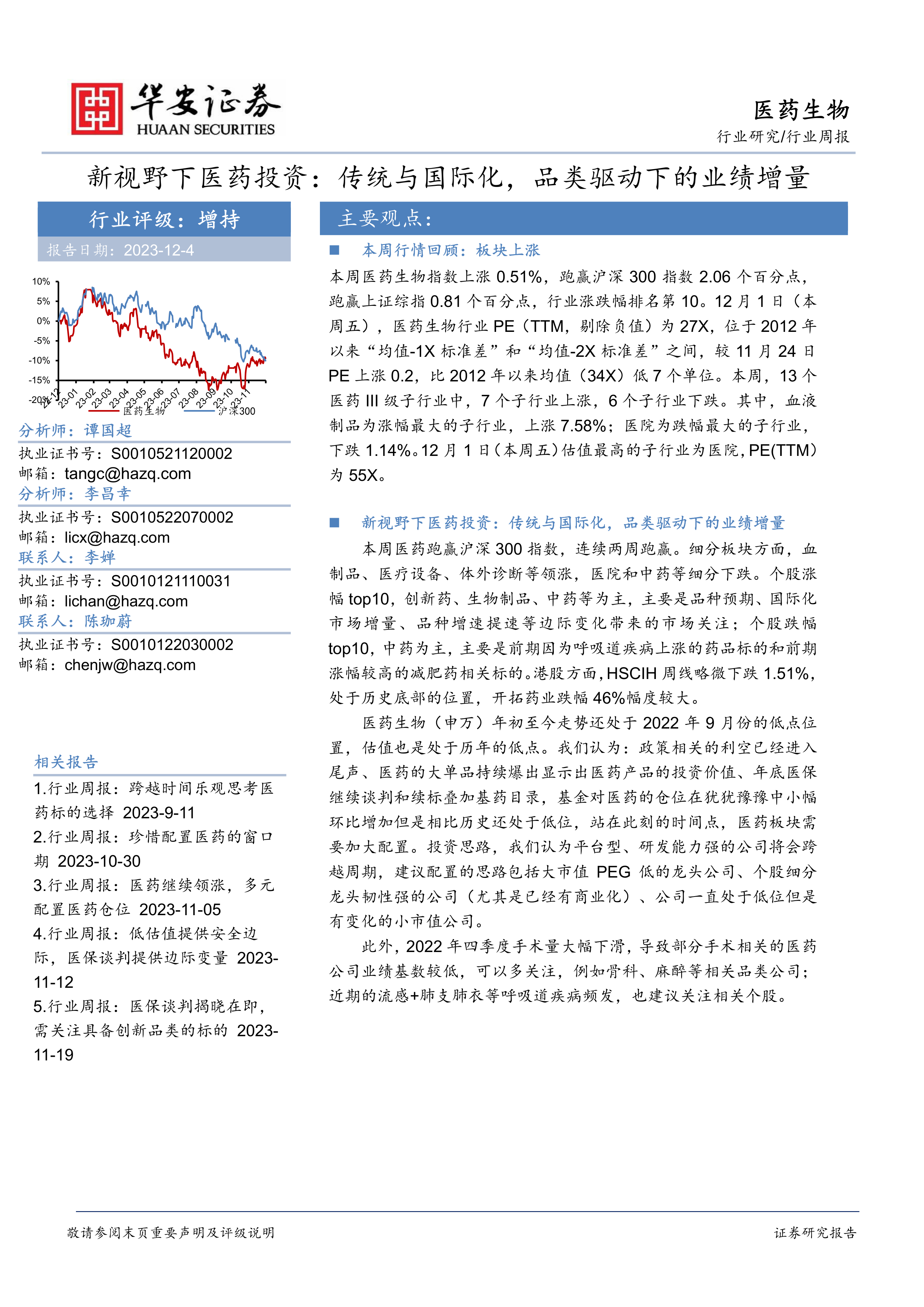 新视野下医药投资:传统与国际化,品类驱动下的业绩增量