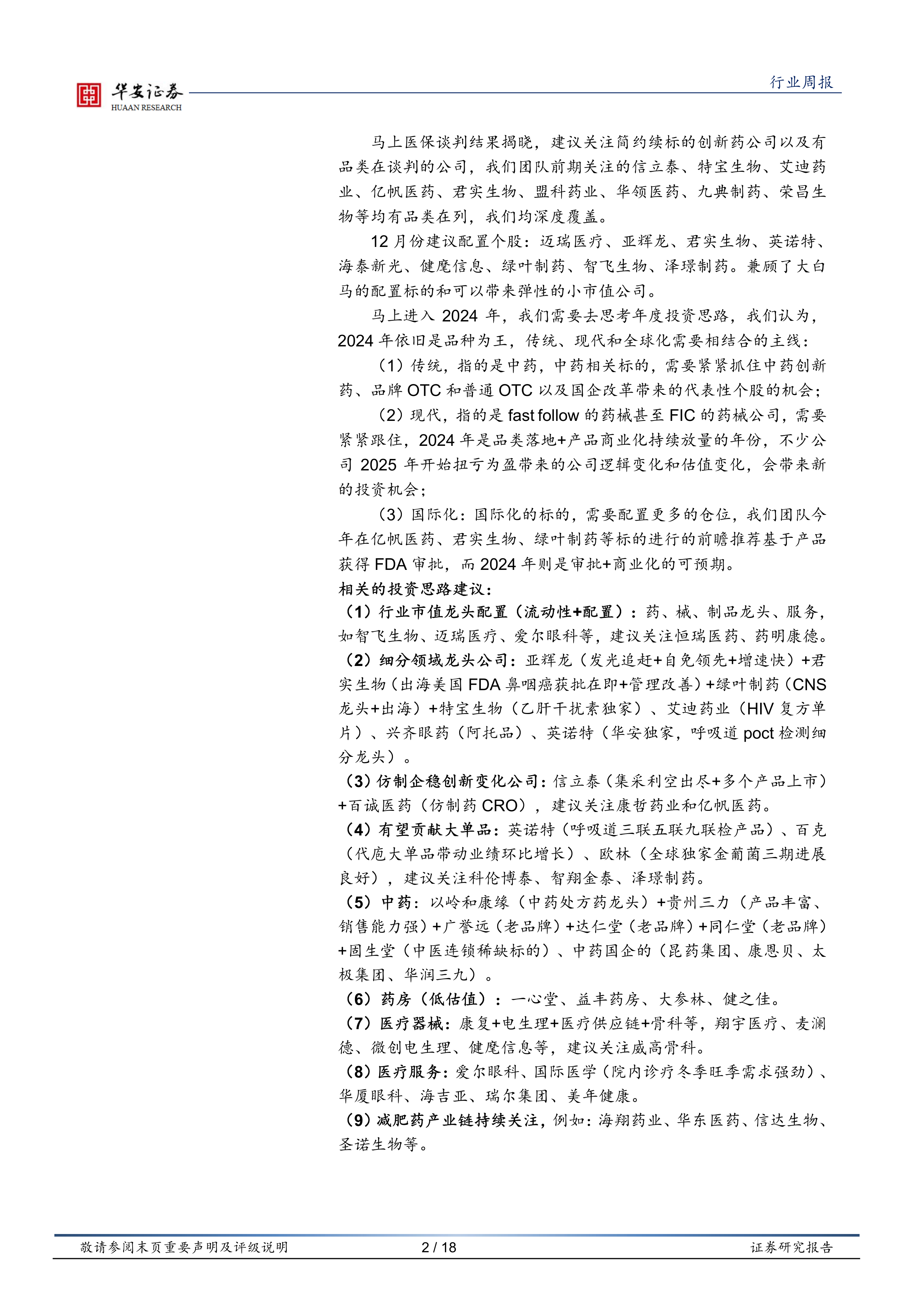 (3)国际化:国际化的标的,需要配置更多的仓位,我们团队今年在亿帆医药、君实生物、绿叶制药等标的进行的前瞻推荐基于产品获得FDA审批,而2024年则是审批+商业化的可预期。
