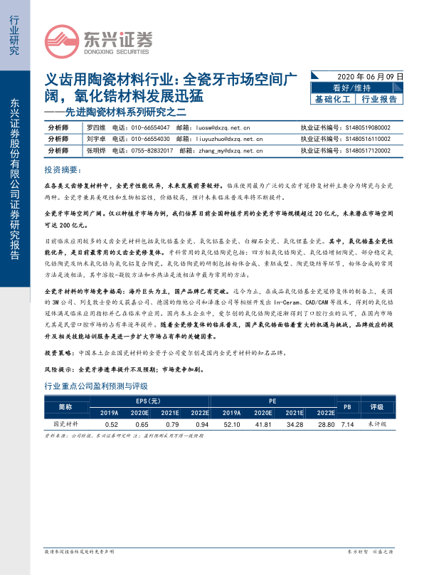 这份东兴证券深度报告的核心观点是:义齿用陶瓷材料,特别是全瓷牙市场,拥有巨大的发展潜力。报告基于市场规模估算、材料性能分析和竞争格局解读,得出以下几点结论: