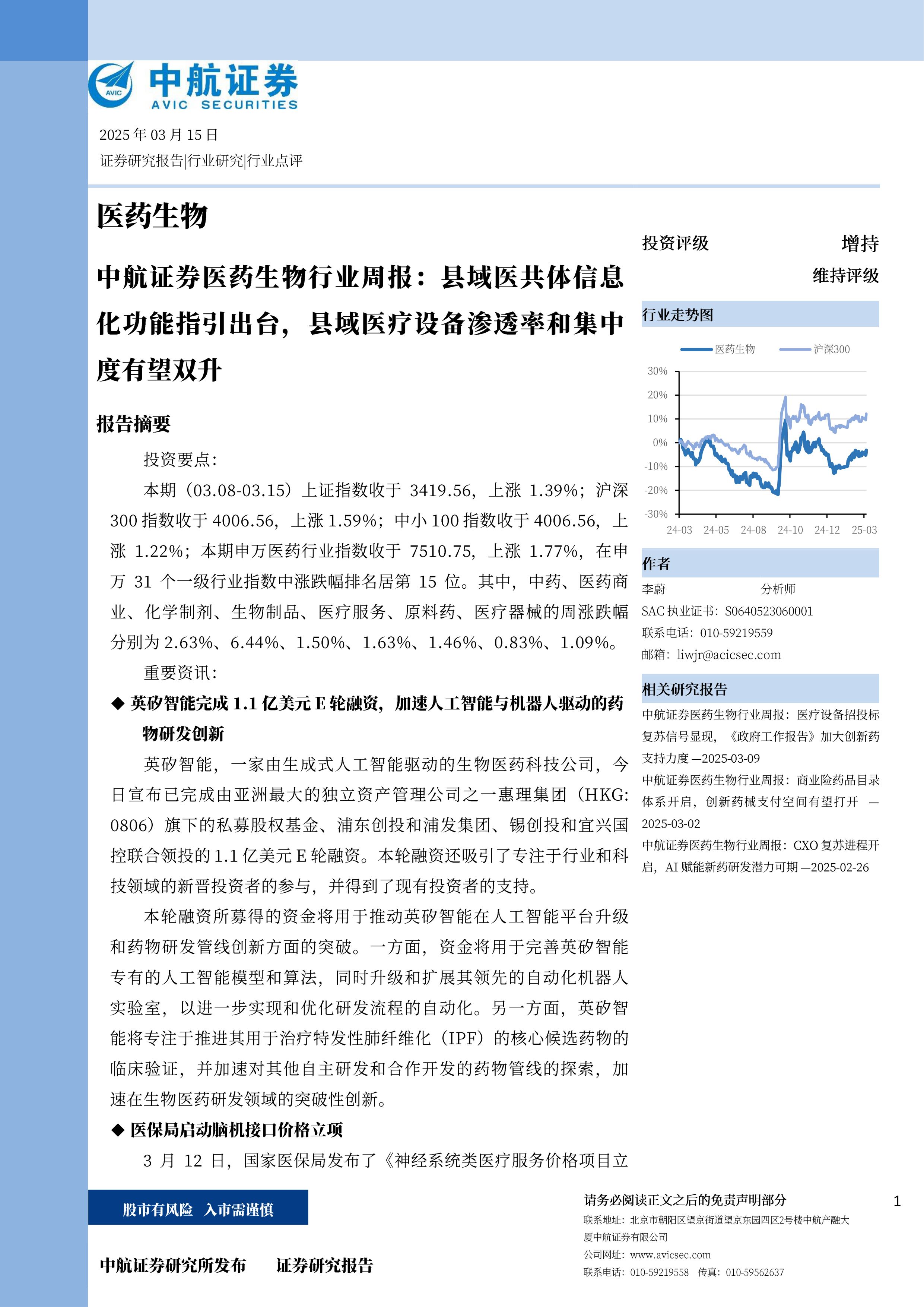 医药生物行业周报:县域医共体信息化功能指引出台,县域医疗设备渗透率和集中度有望双升