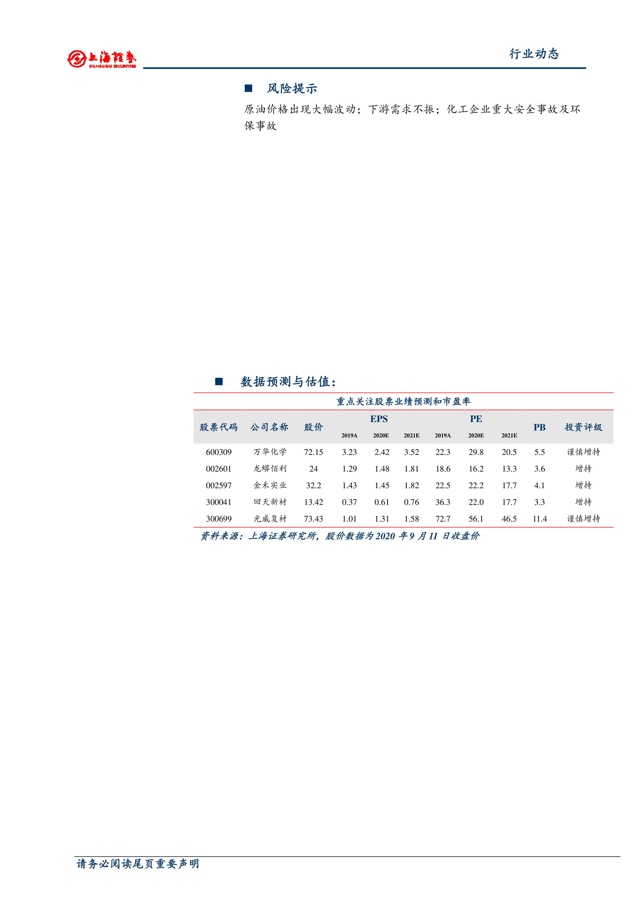 化工行业周报:油价继续下跌,关注低估值顺周期及近消费端龙头