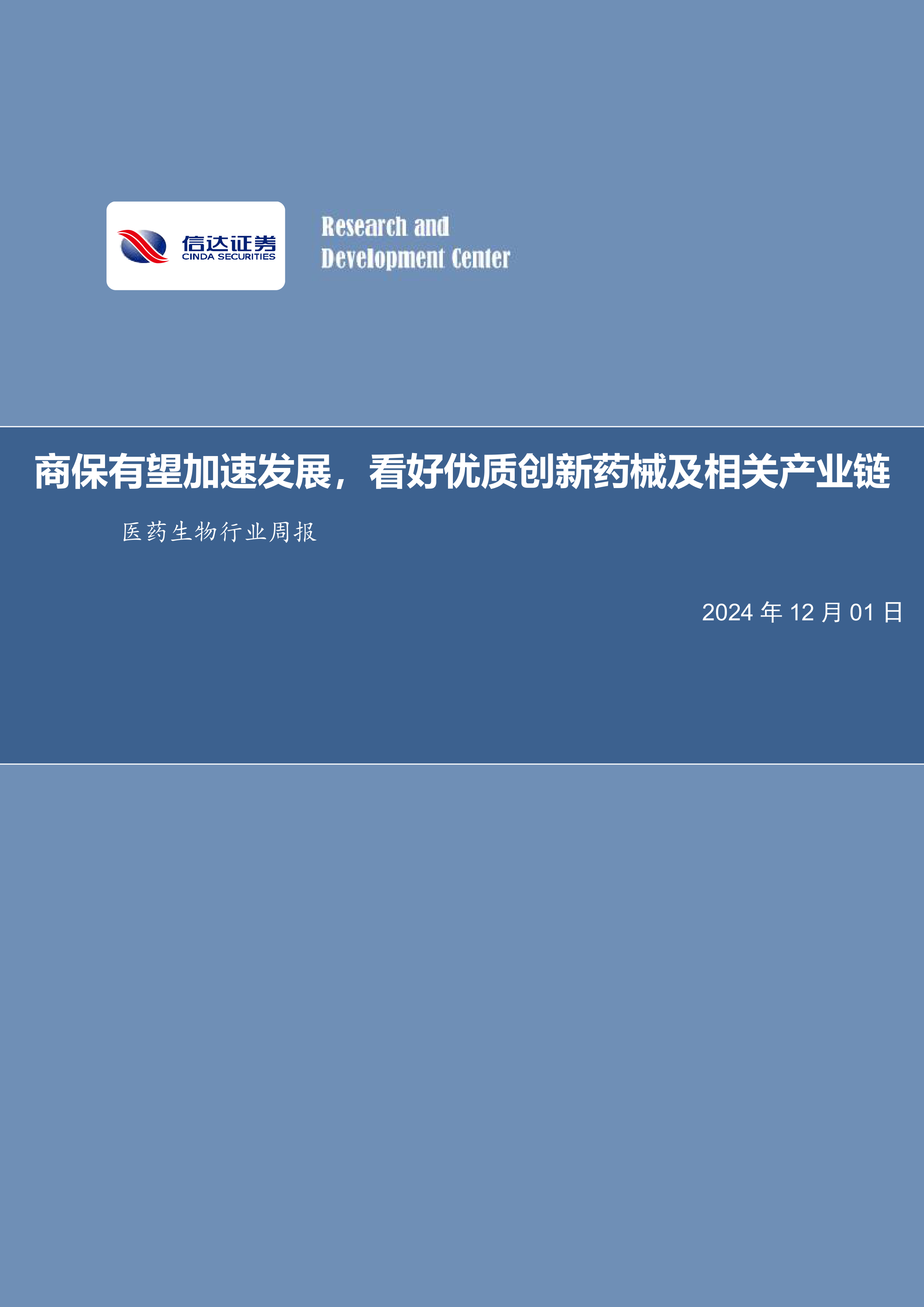 医药生物行业周报:商保有望加速发展,看好优质创新药械及相关产业链