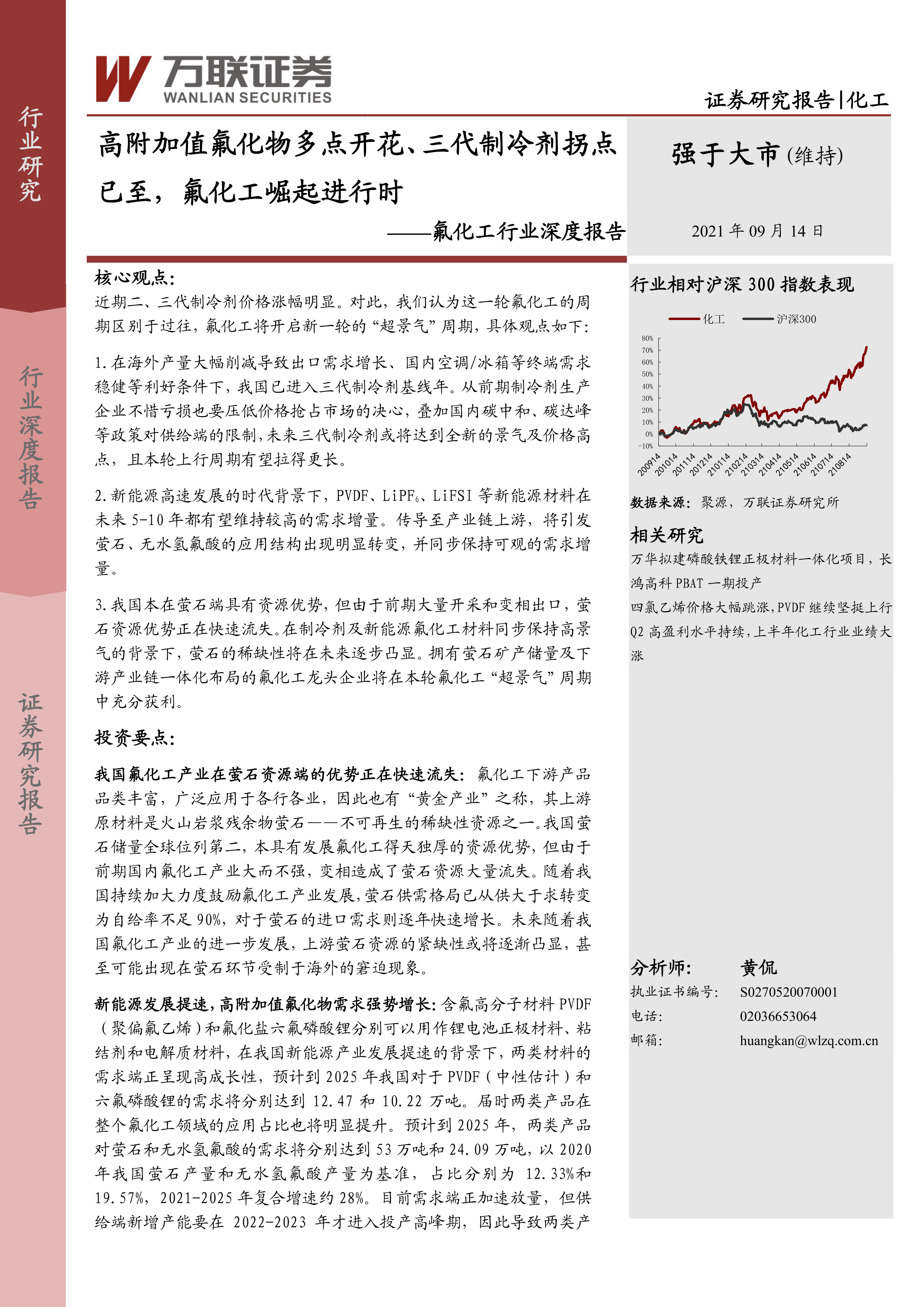 氟化工行业深度报告:高附加值氟化物多点开花、三代制冷剂拐点已至,氟化工崛起进行时