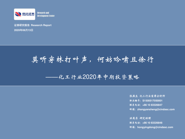 化工行业2020年中期投资策略:莫听穿林打叶声,何妨吟啸且徐行