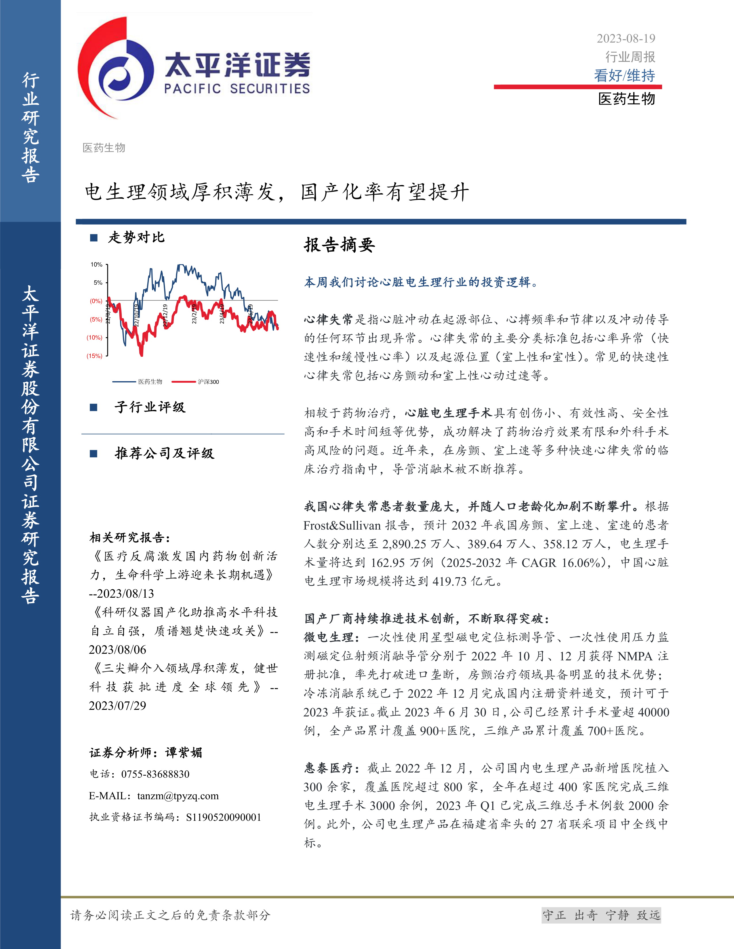 医药生物行业周报:电生理领域厚积薄发,国产化率有望提升