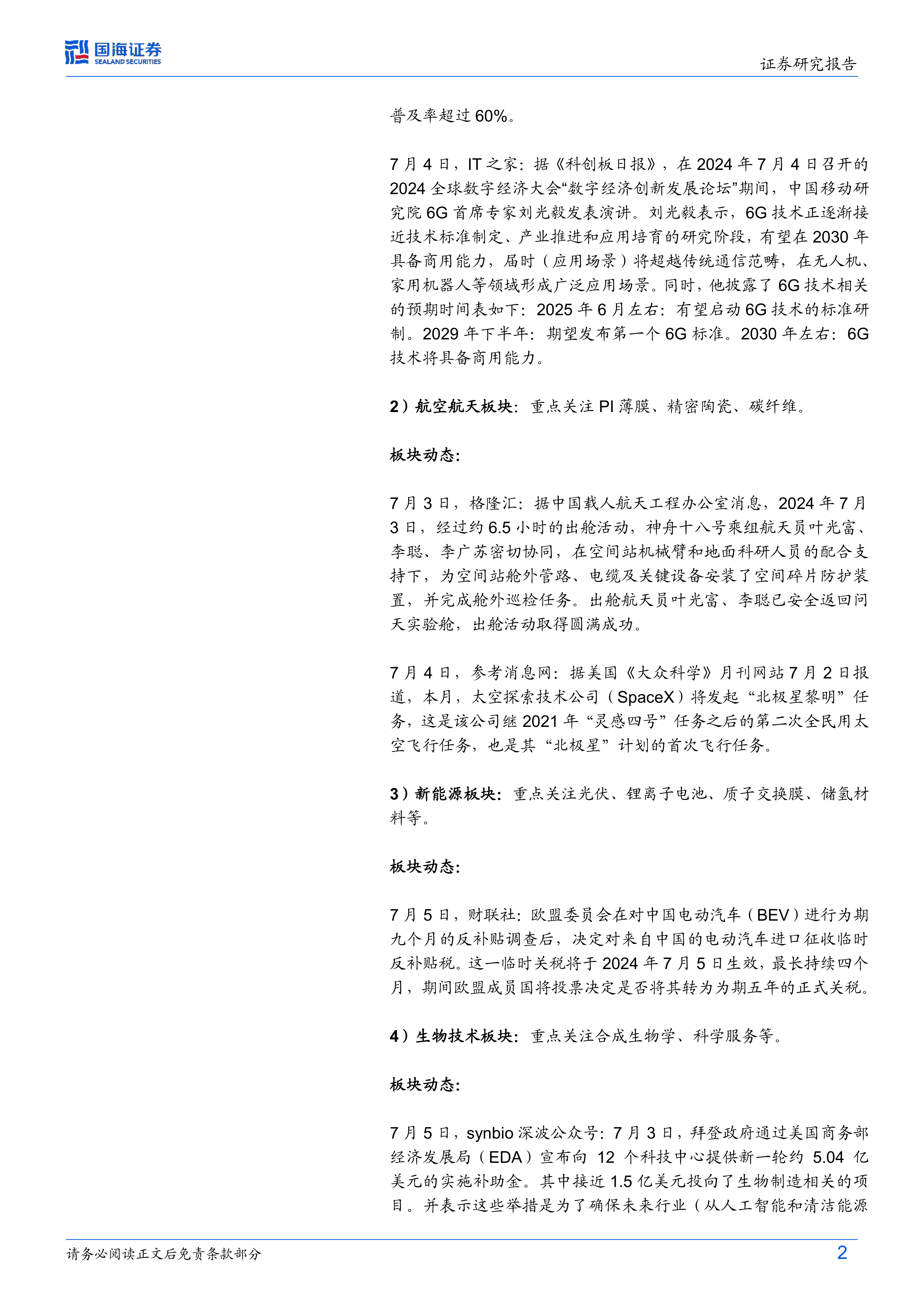 该板块重点关注PI薄膜、精密陶瓷和碳纤维。报告提及神舟十八号载人航天任务的成功以及SpaceX“北极星黎明”任务的即将启动。 报告还提供了中国铝合金、螺纹钢和碳纤维市场价格等关键数据,并对部分重点企业的公告和关键数据进行了分析。