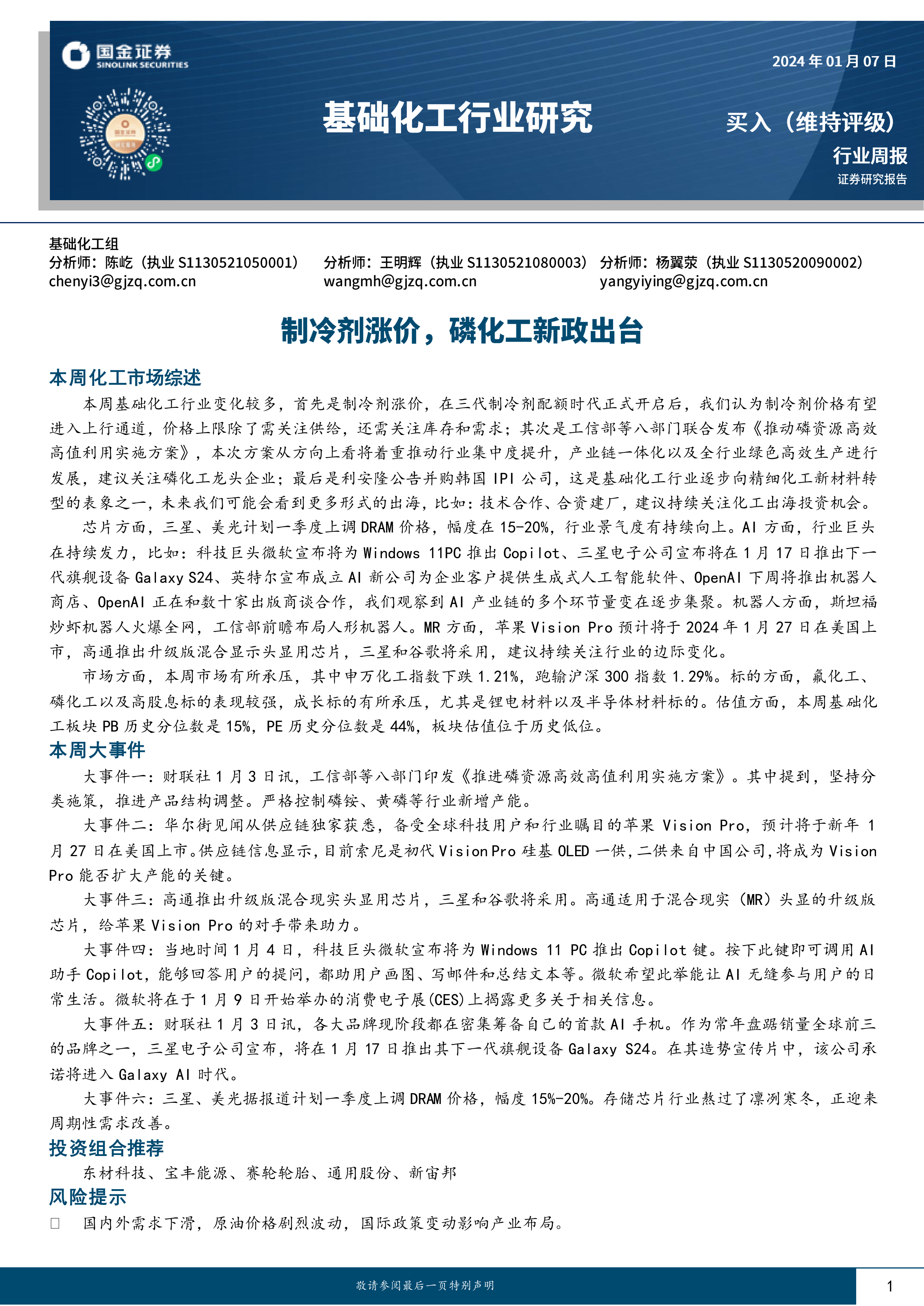 基础化工行业研究:制冷剂涨价,磷化工新政出台