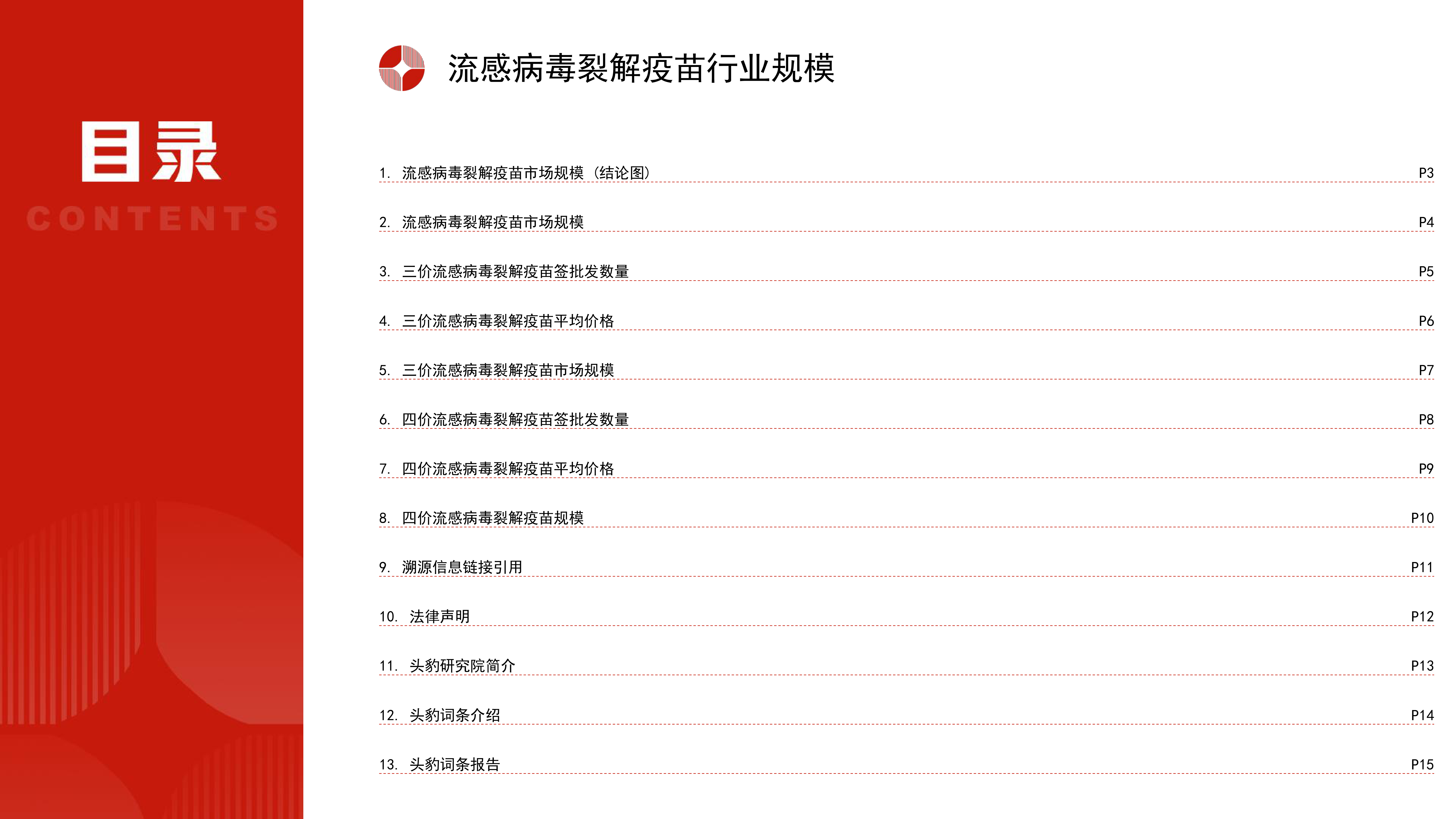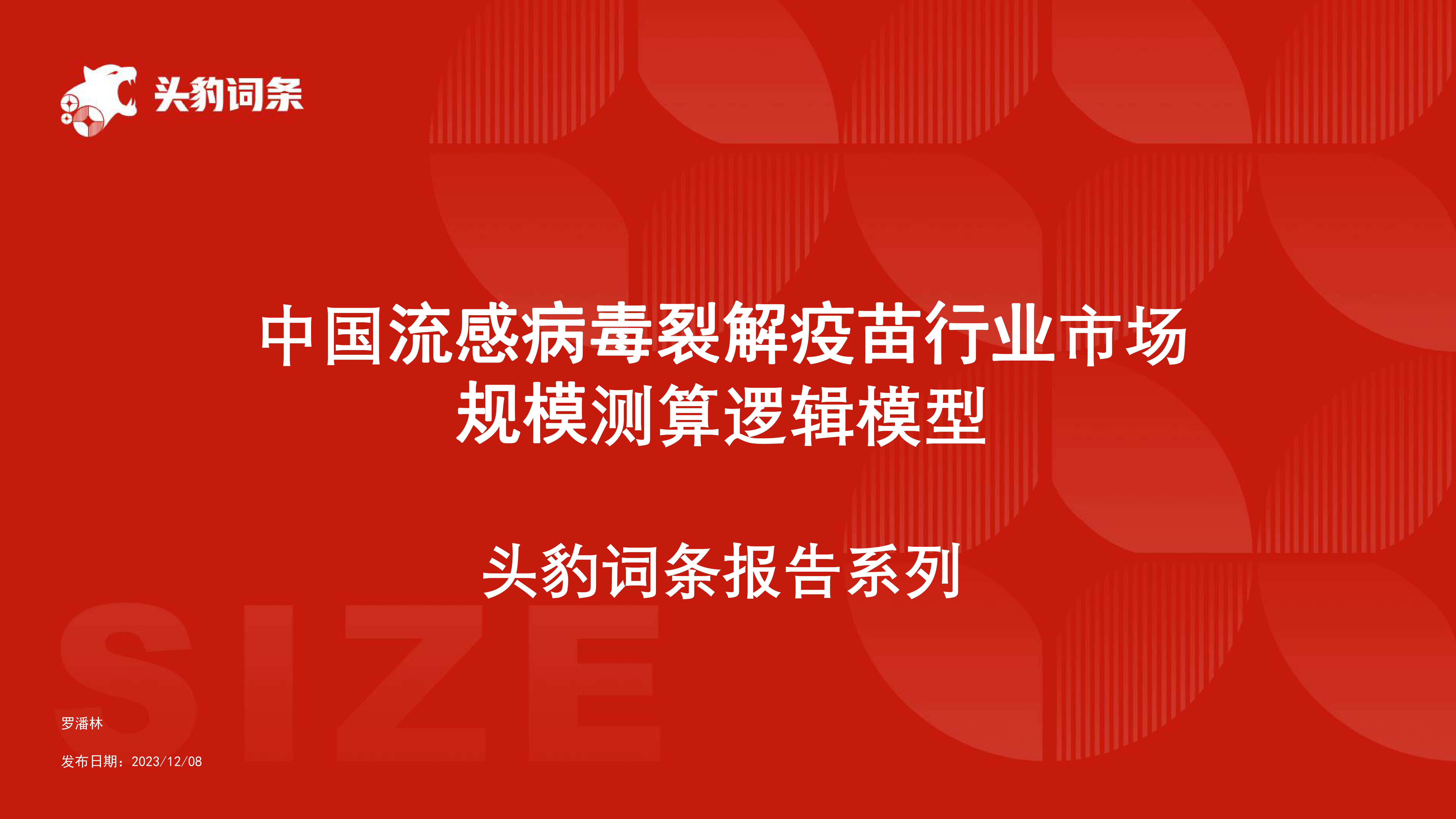 本报告基于头豹研究院发布的《流感病毒裂解疫苗行业中国市场规模测算逻辑模型》报告,对中国流感病毒裂解疫苗市场规模进行分析。报告核心观点如下: