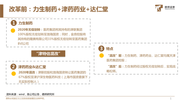 改革前:力生制药+津药药业+达仁堂