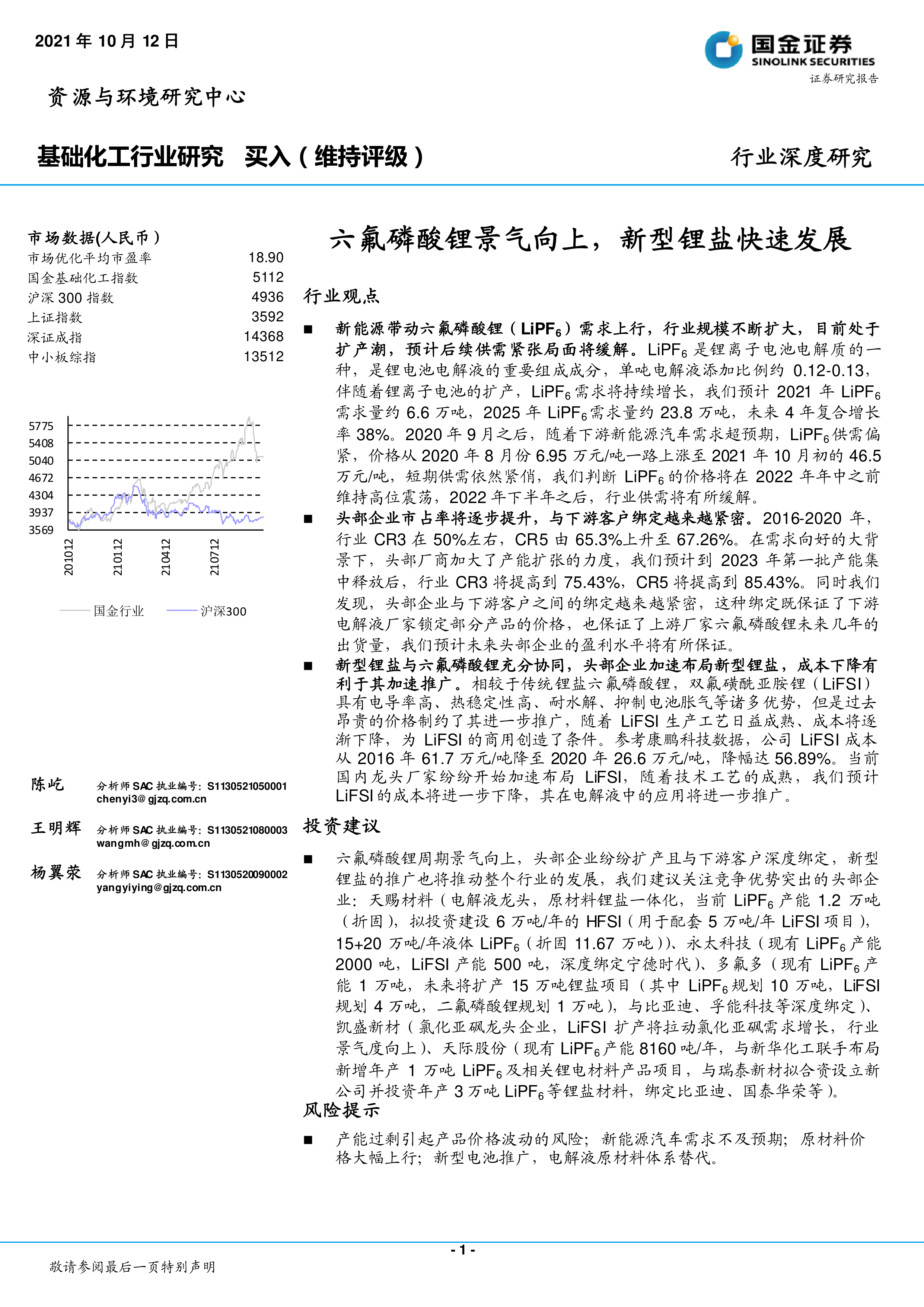 基础化工行业研究:六氟磷酸锂景气向上,新型锂盐快速发展