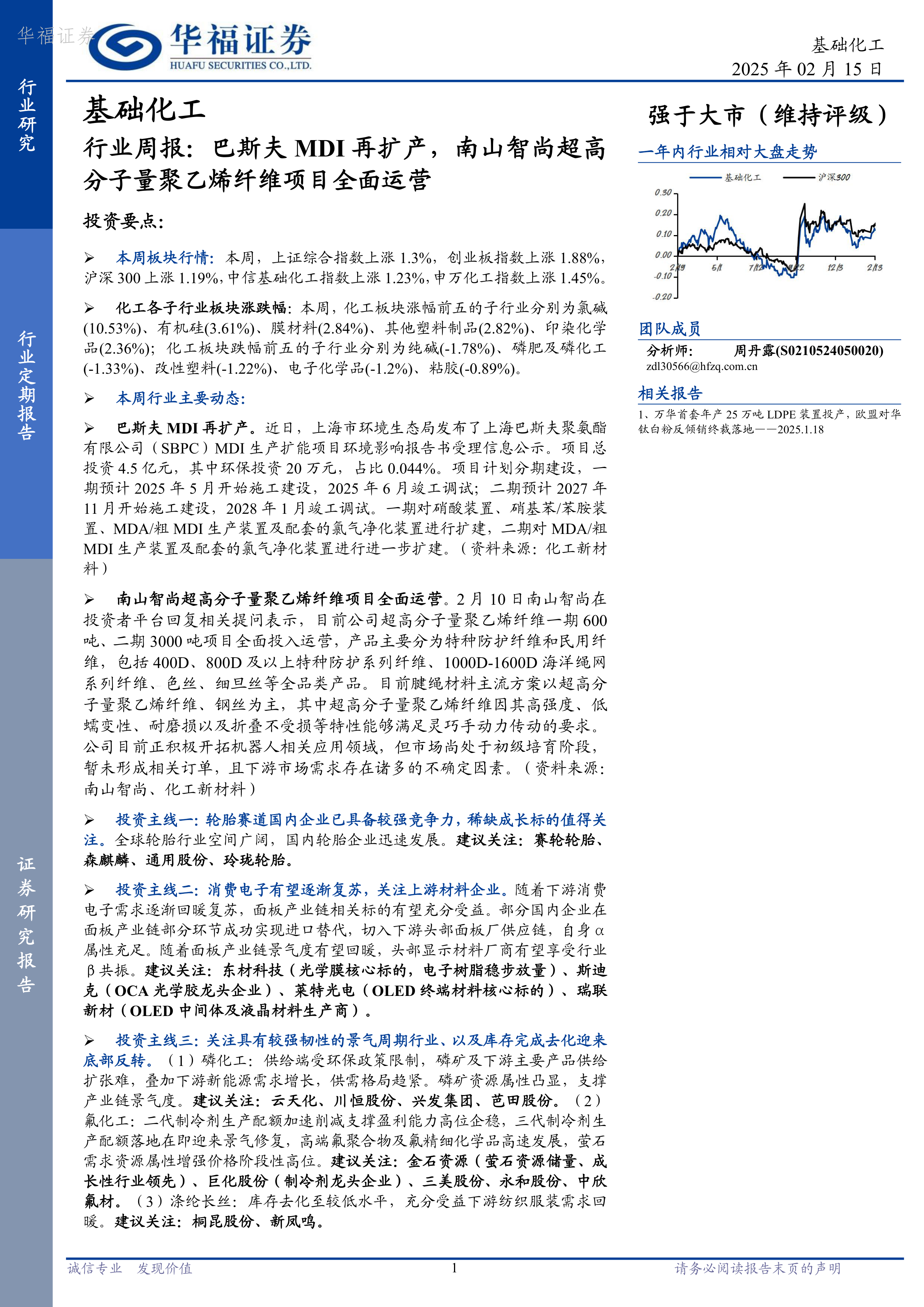 基础化工行业周报:巴斯夫MDI再扩产,南山智尚超高分子量聚乙烯纤维项目全面运营