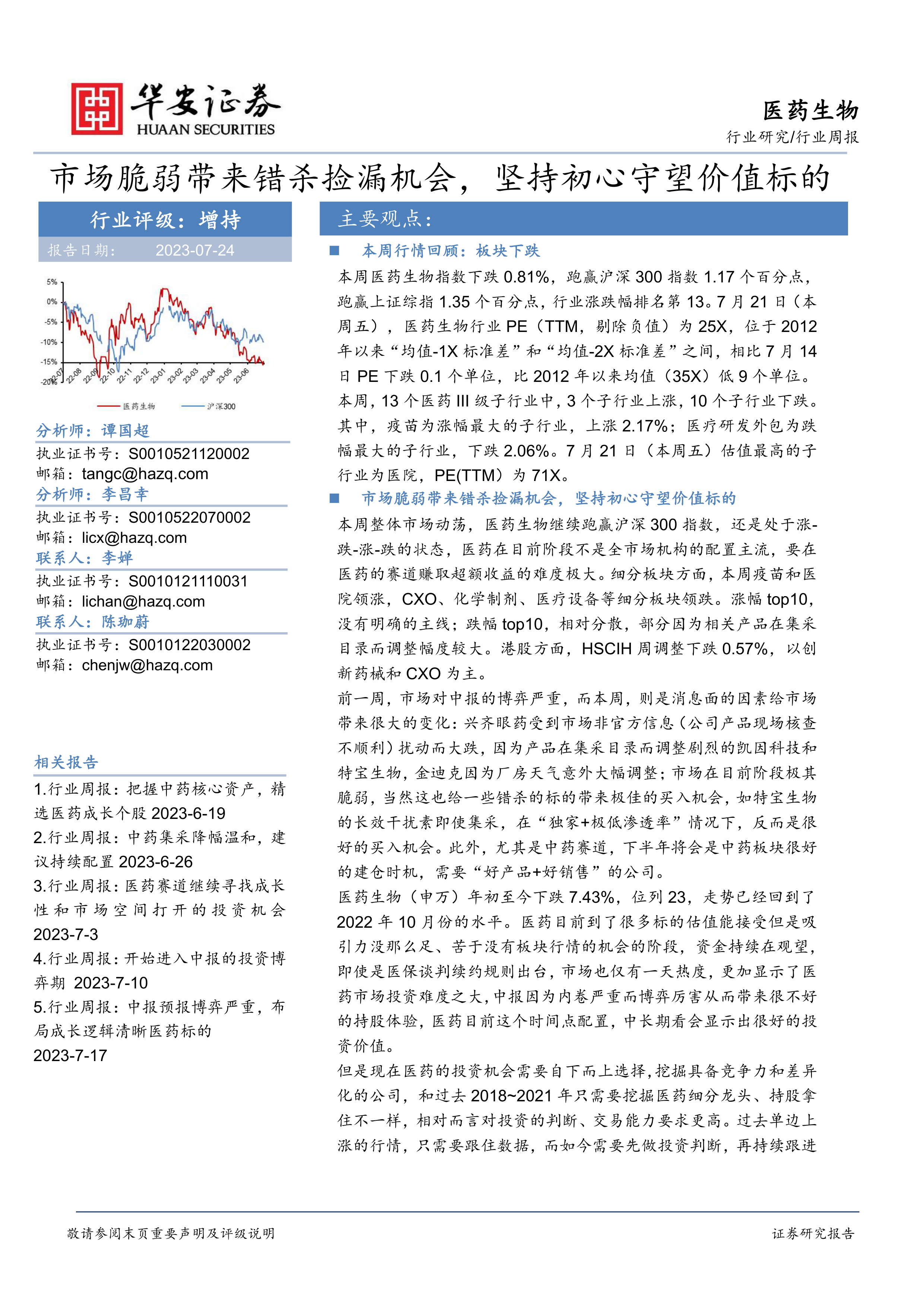 医药生物行业周报:市场脆弱带来错杀捡漏机会,坚持初心守望价值标的