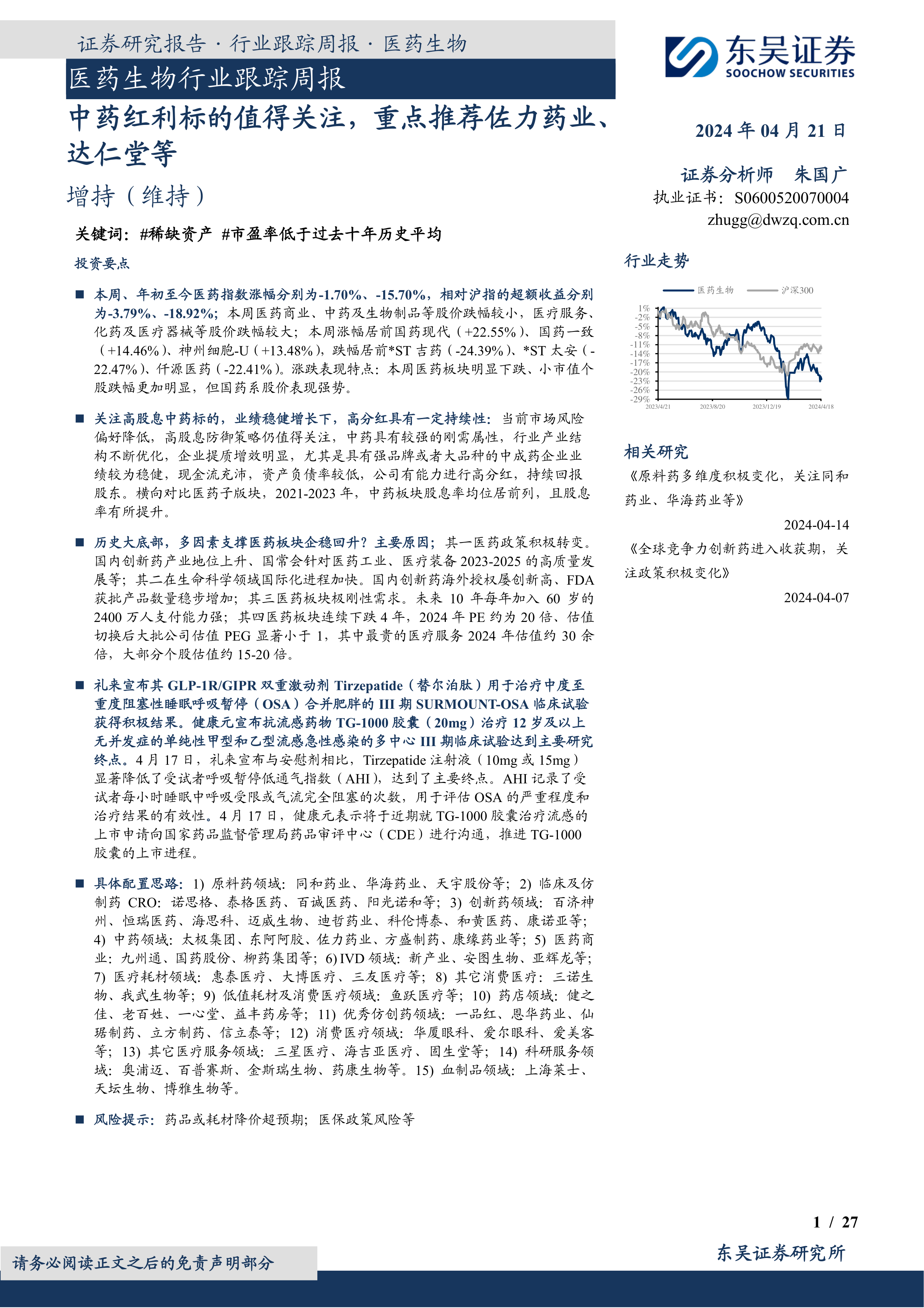 本报告对医药生物行业,特别是中药板块的市场表现、投资机会和风险进行了全面的分析。报告认为,尽管医药板块整体面临挑战,但中药板块由于其独特的优势,值得投资者关注。报告建议投资者关注具有成长性确定、稳定高股息和股息率持续提升特征的中药标的,并提供了具体的投资策略和风险提示,为投资者提供参考。 报告数据翔实,分析深入,并结合图表数据,增强了报告的可读性和说服力。 但需注意报告中提到的风险提示,谨慎投资。