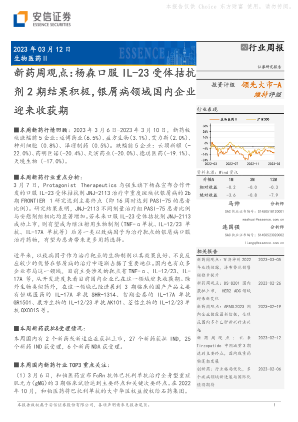新药周观点:杨森口服IL-23受体拮抗剂2期结果积极,银屑病领域国内企业迎来收获期