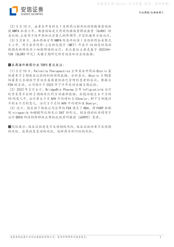 本周海外新药行业TOP3重点关注: